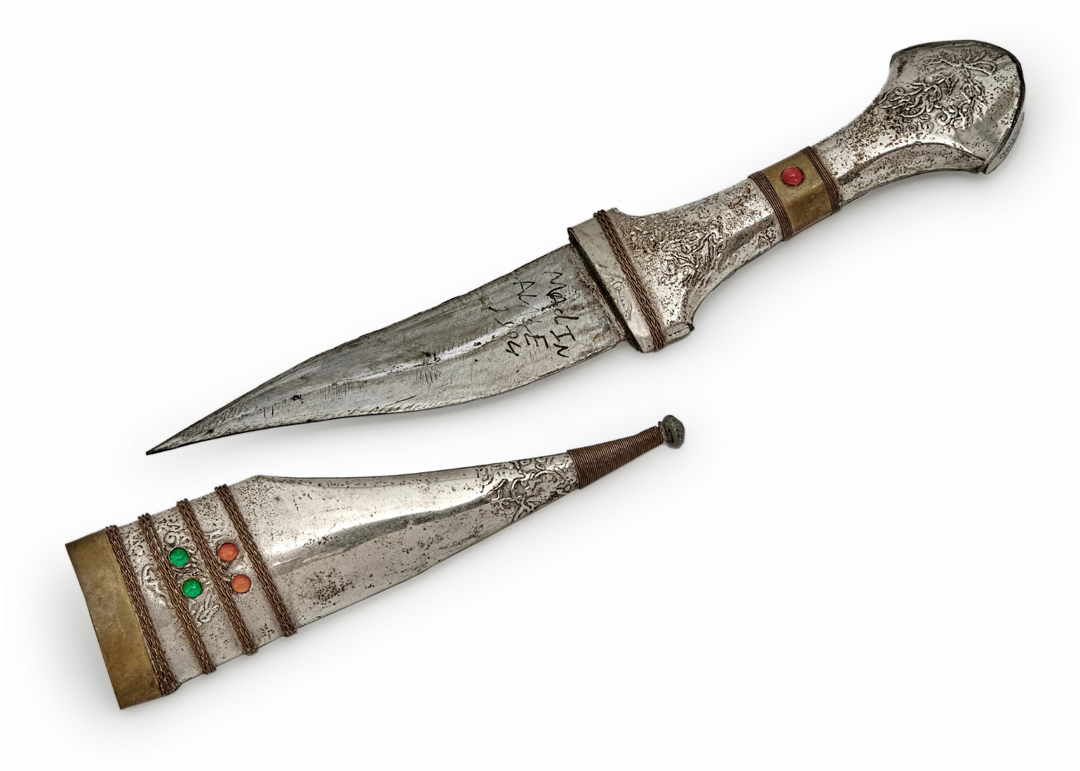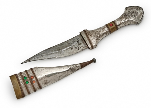 קישוט בצורת פגיון עשוי מתכת מצופה כסף באורך: 26.5 ס"מ