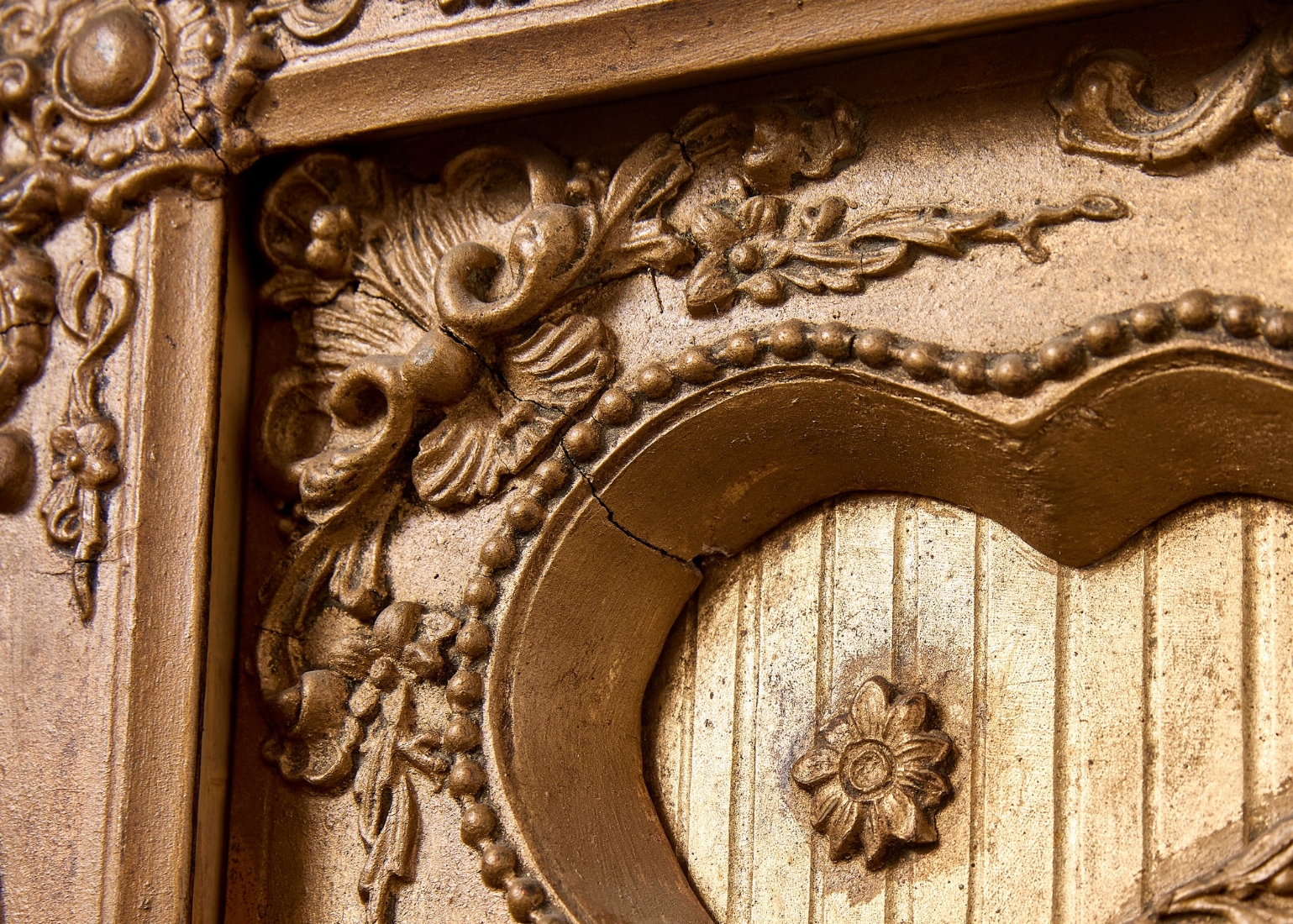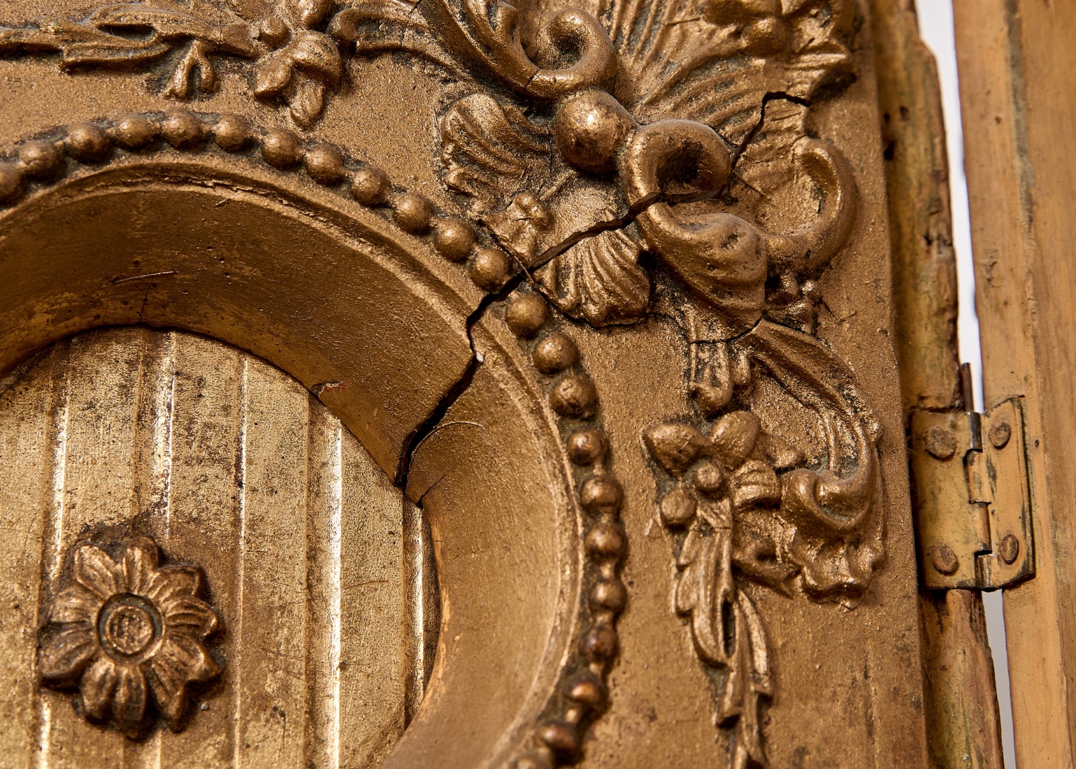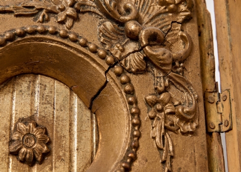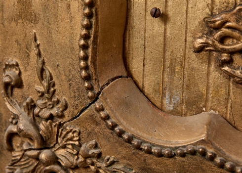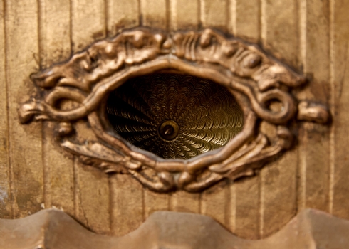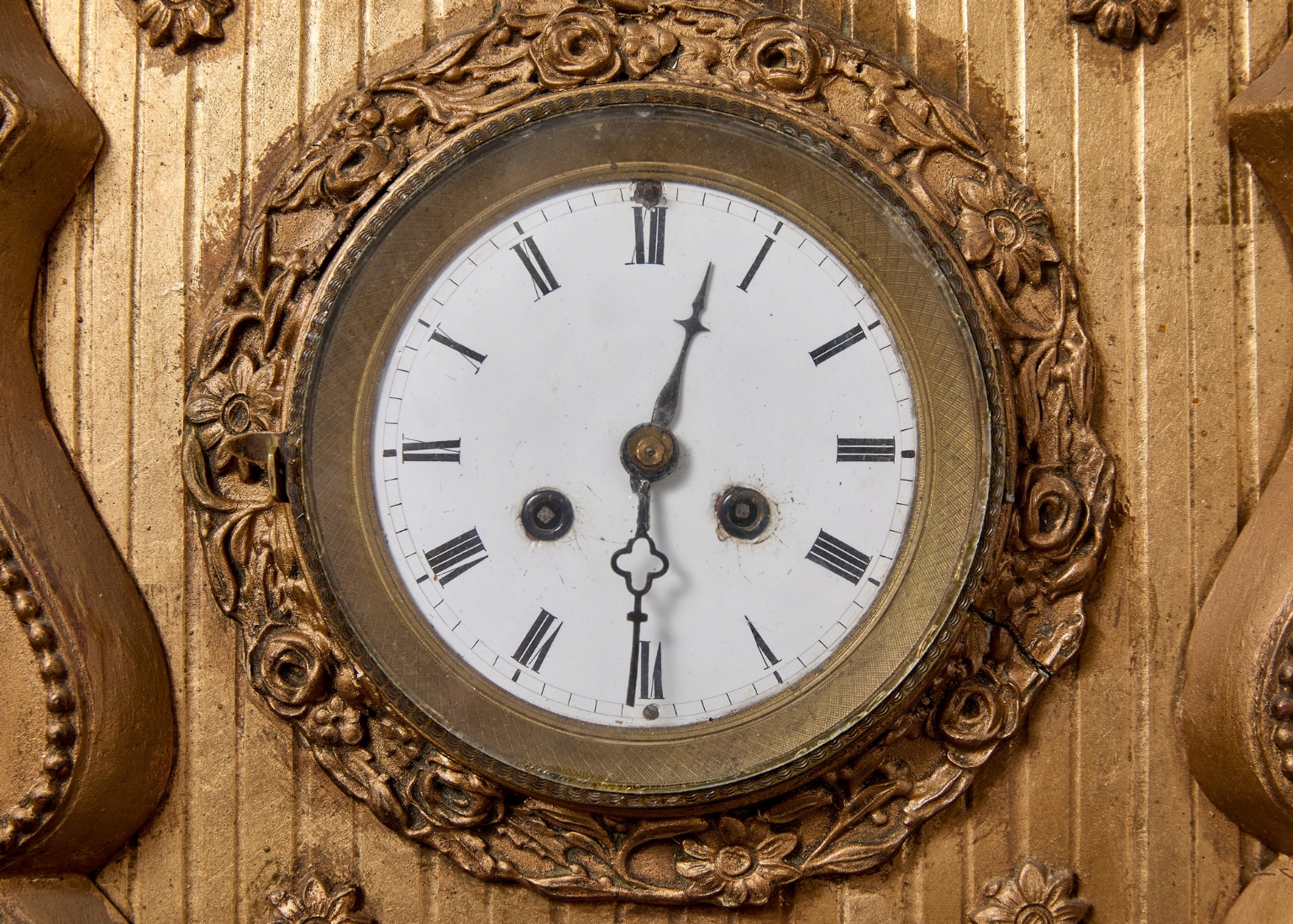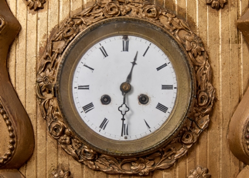 שעון עתיק מהמחצית הראשונה של המאה ה-19, עשוי עץ מוזהב