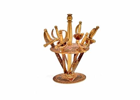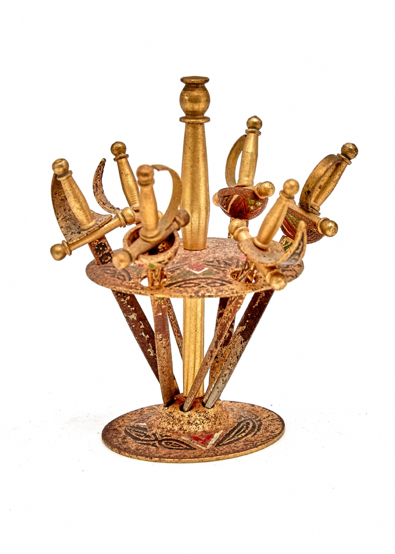 שישה חפצי מתכת שונים ישנים ועתיקים עשוים ברזל פיוטר ועור