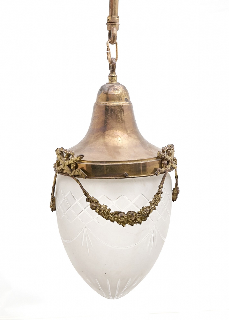 מנורת תקרה בסגנון עתיק מעוצבת כפנס רחוב, עשויה פליז ונחושת