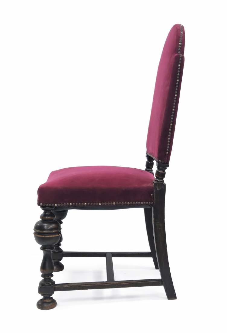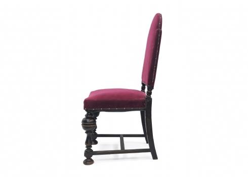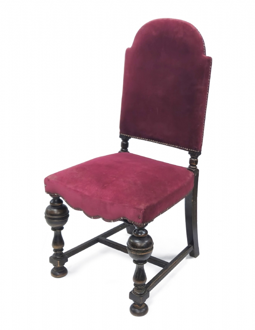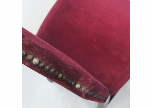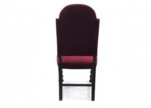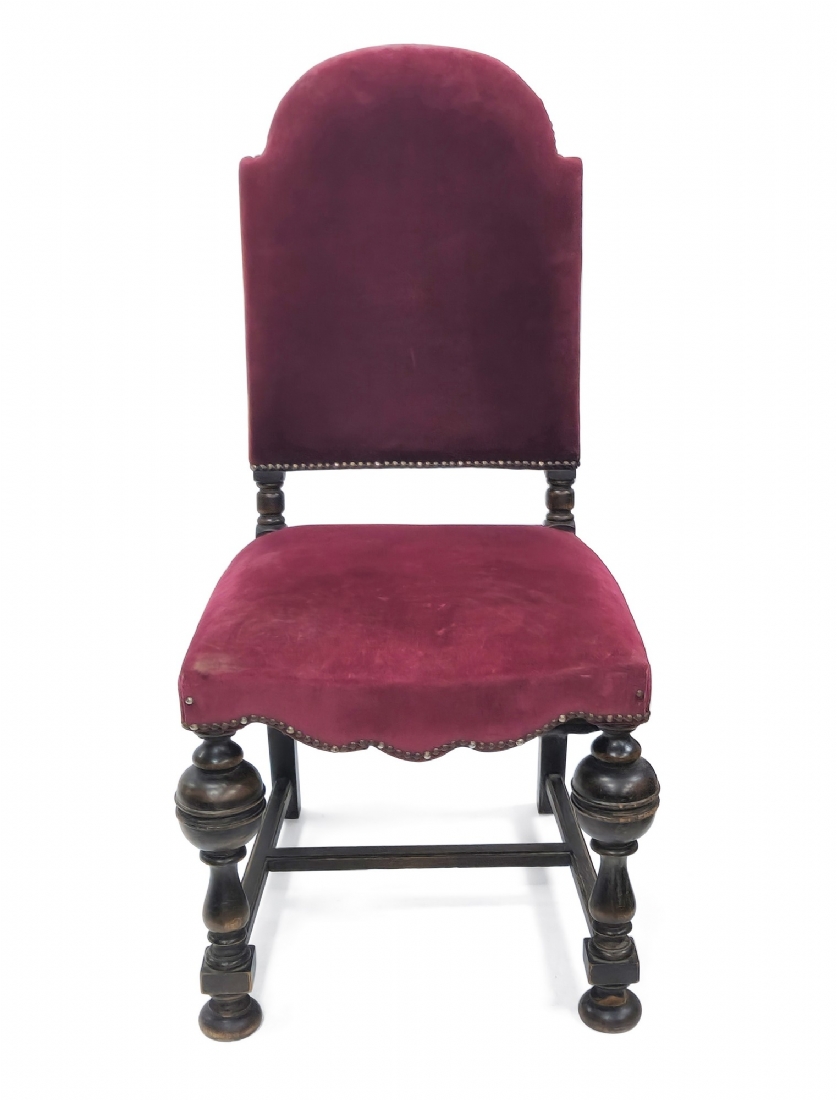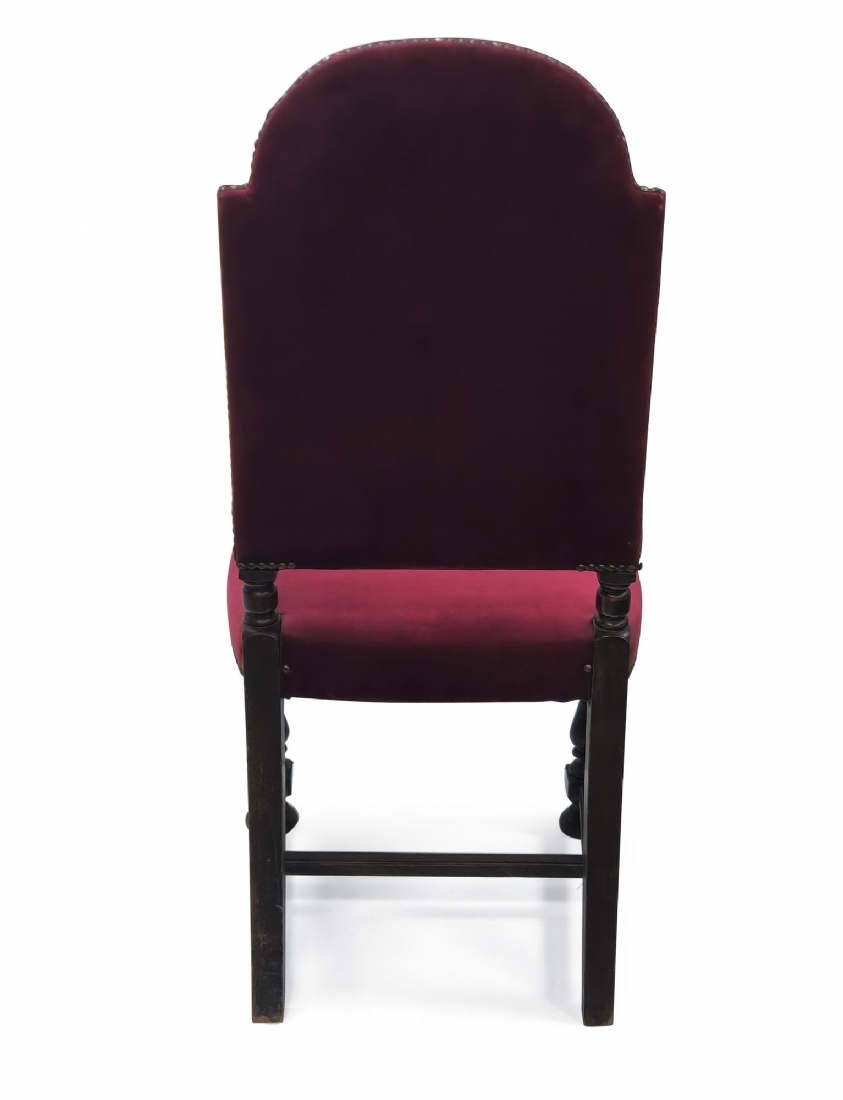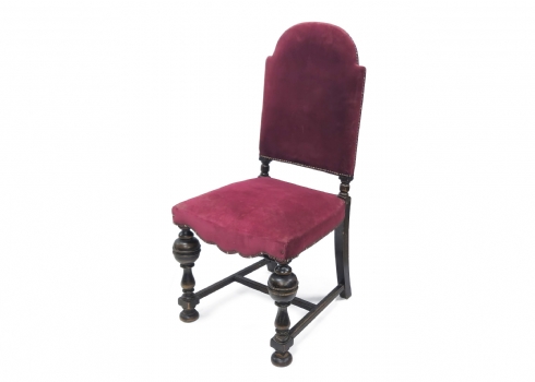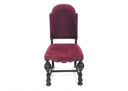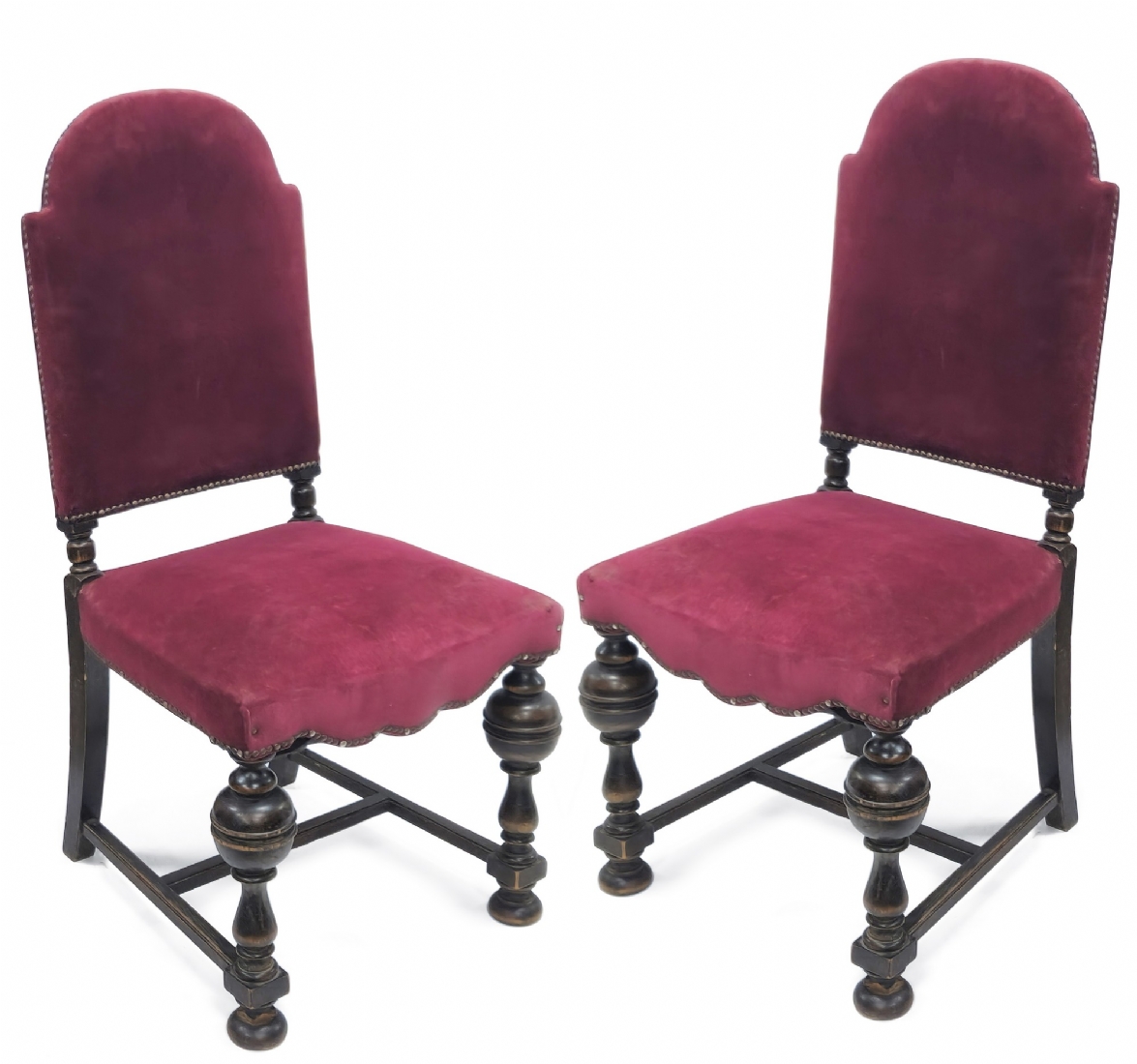 זוג כסאות עתיקים עשויים עץ וריפוד בד אדום