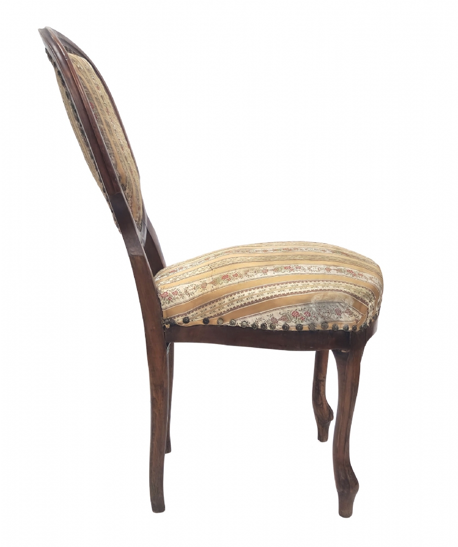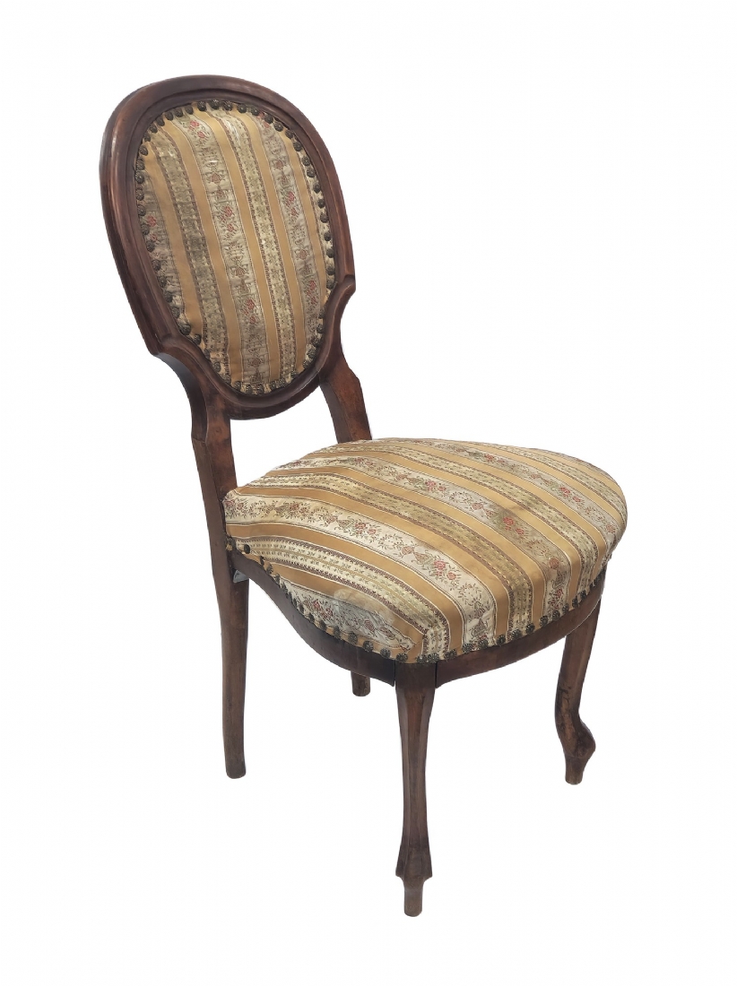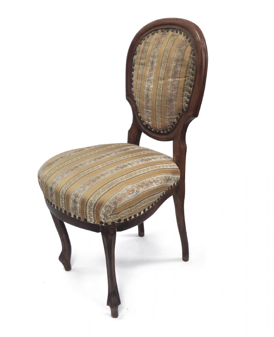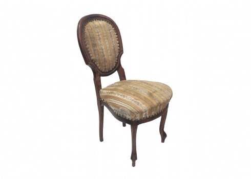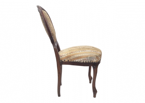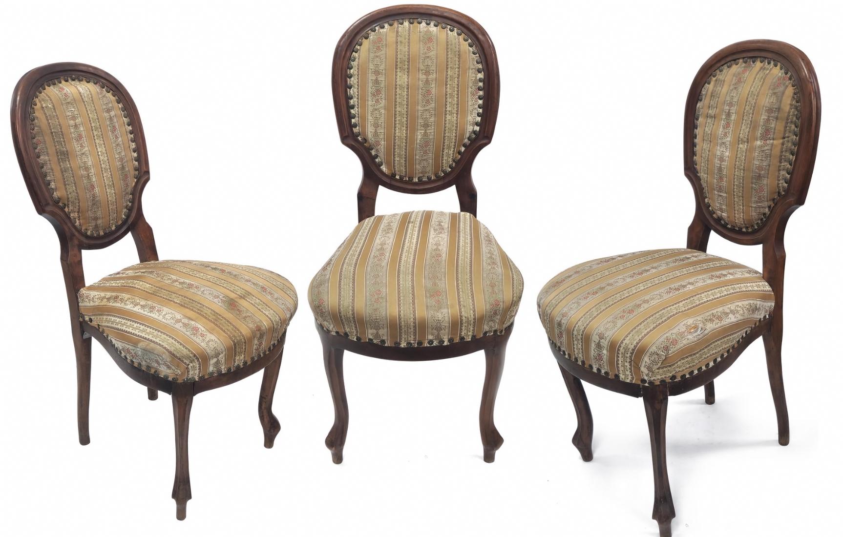 שלושה כסאות בסגנון עתיק עשויים עץ וריפוד בד