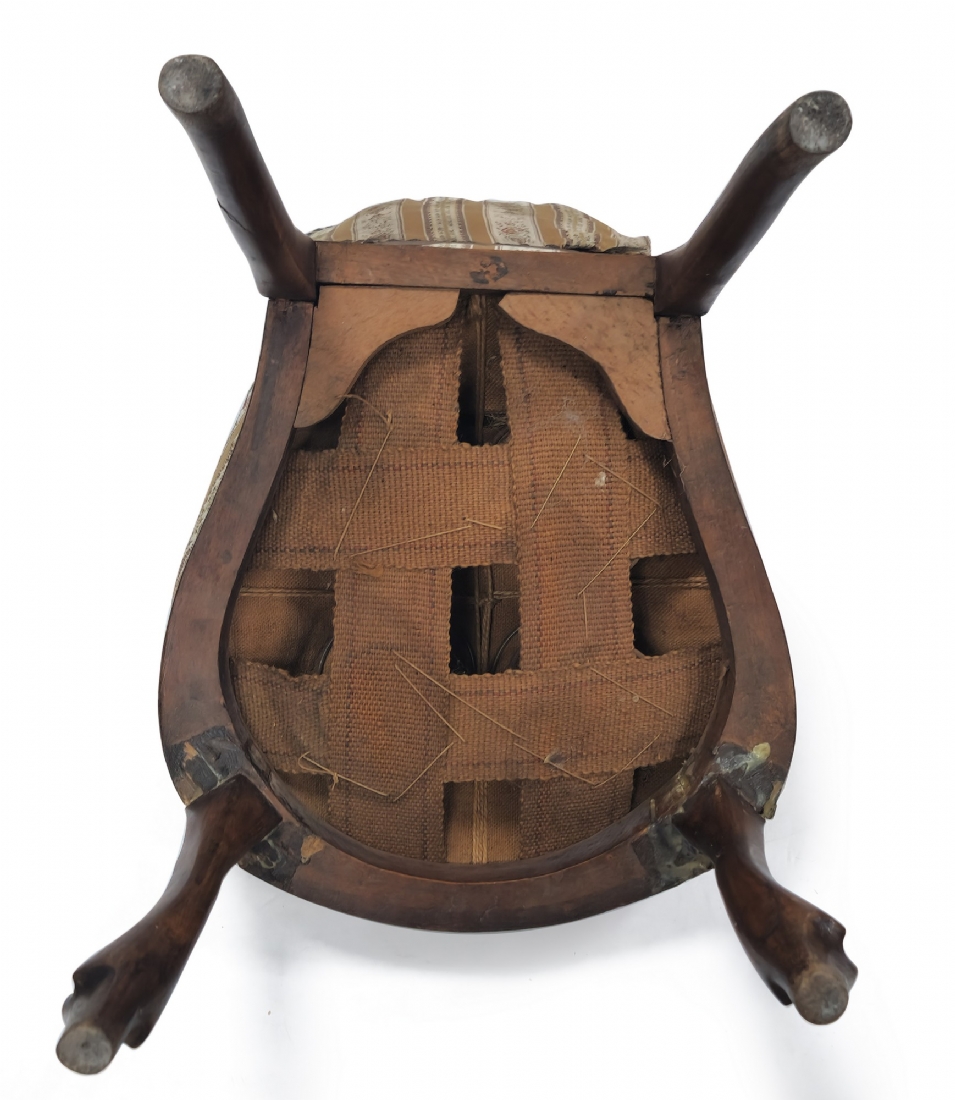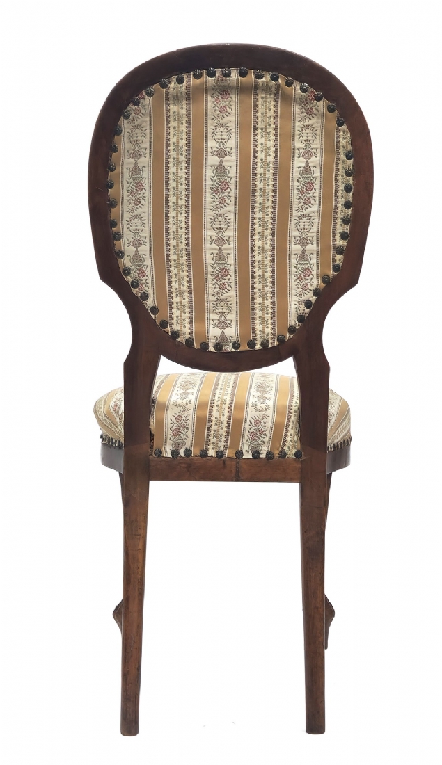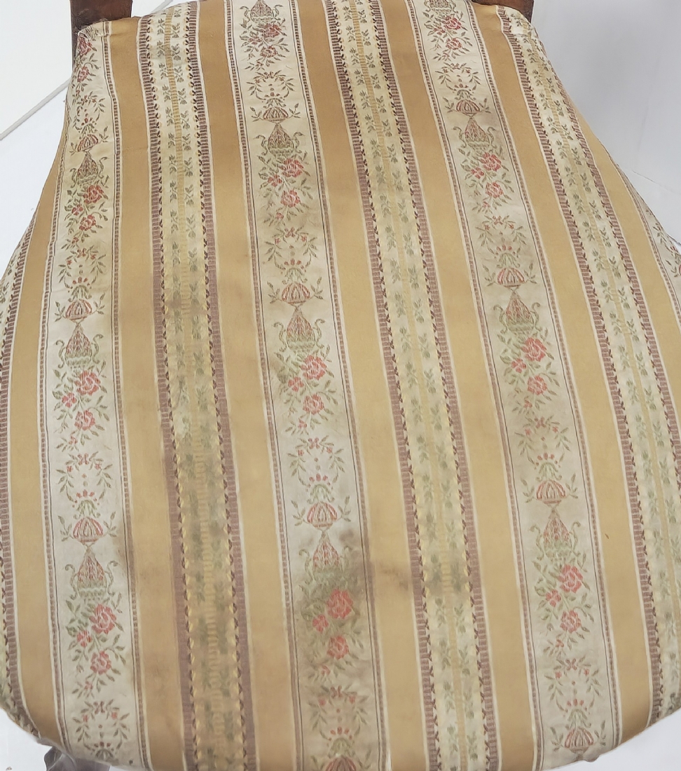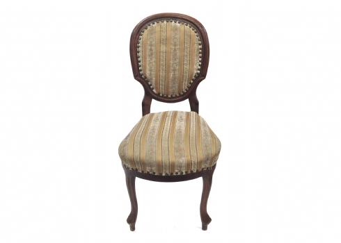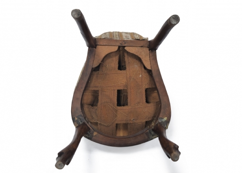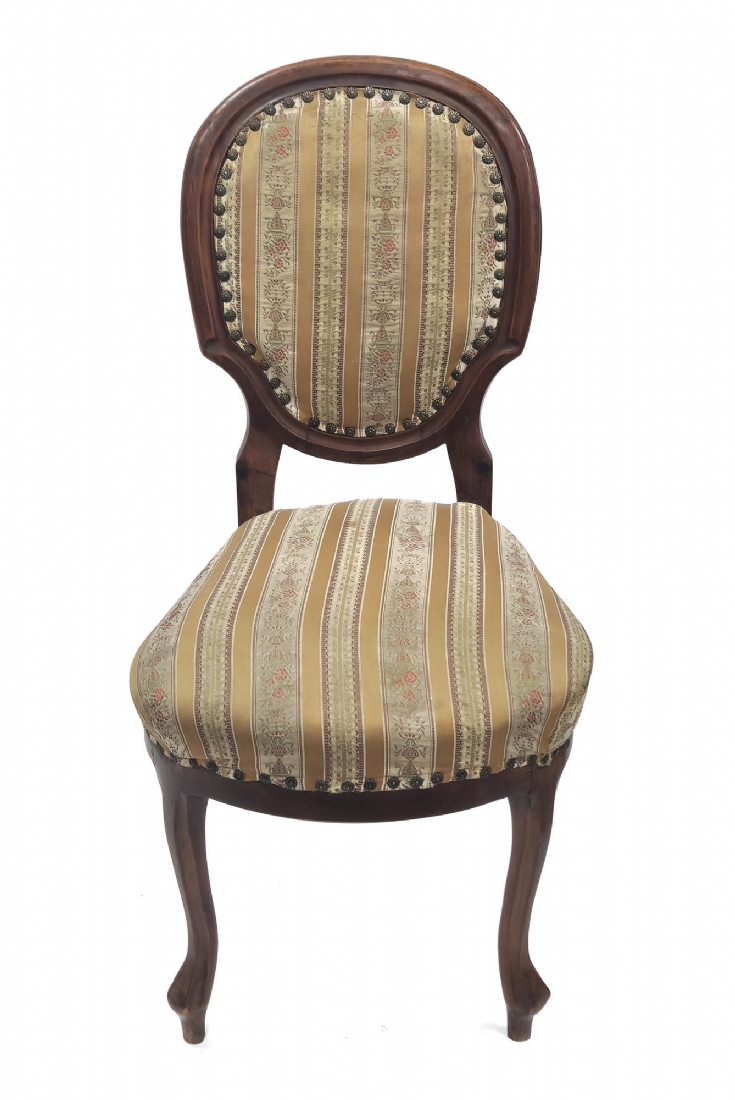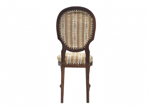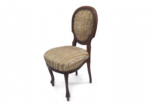 שלושה כסאות בסגנון עתיק עשויים עץ וריפוד בד