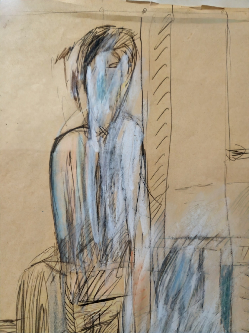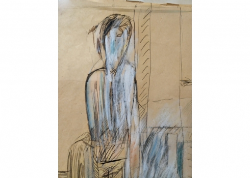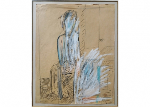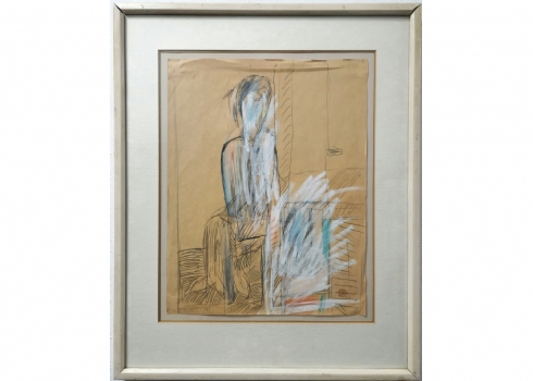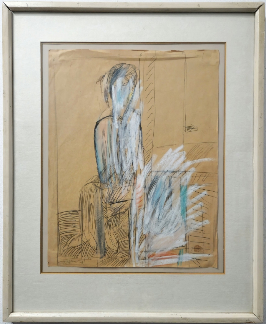 אורי שטטנר (ישראלי, 1935-1999) - דמות בלבן, טכניקה מעורבת על נייר, חתום