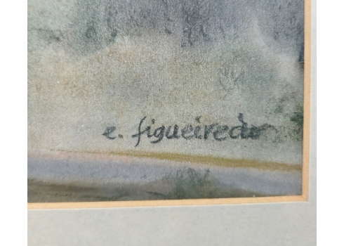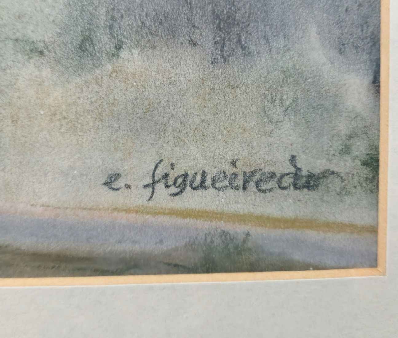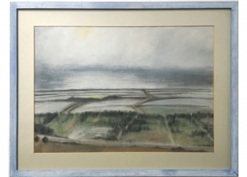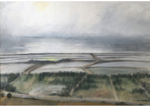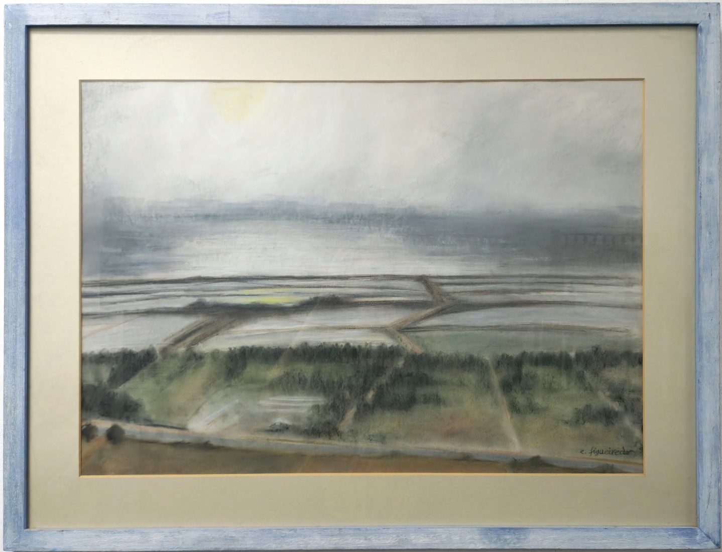 פיגרדו יוניס (Eunice Figueiredo)- חמסין במעגן מיכאל , גירי פסטל על נייר, חתום