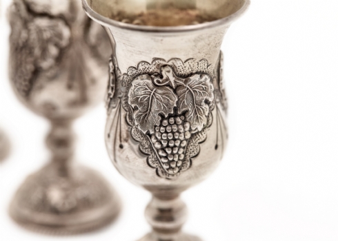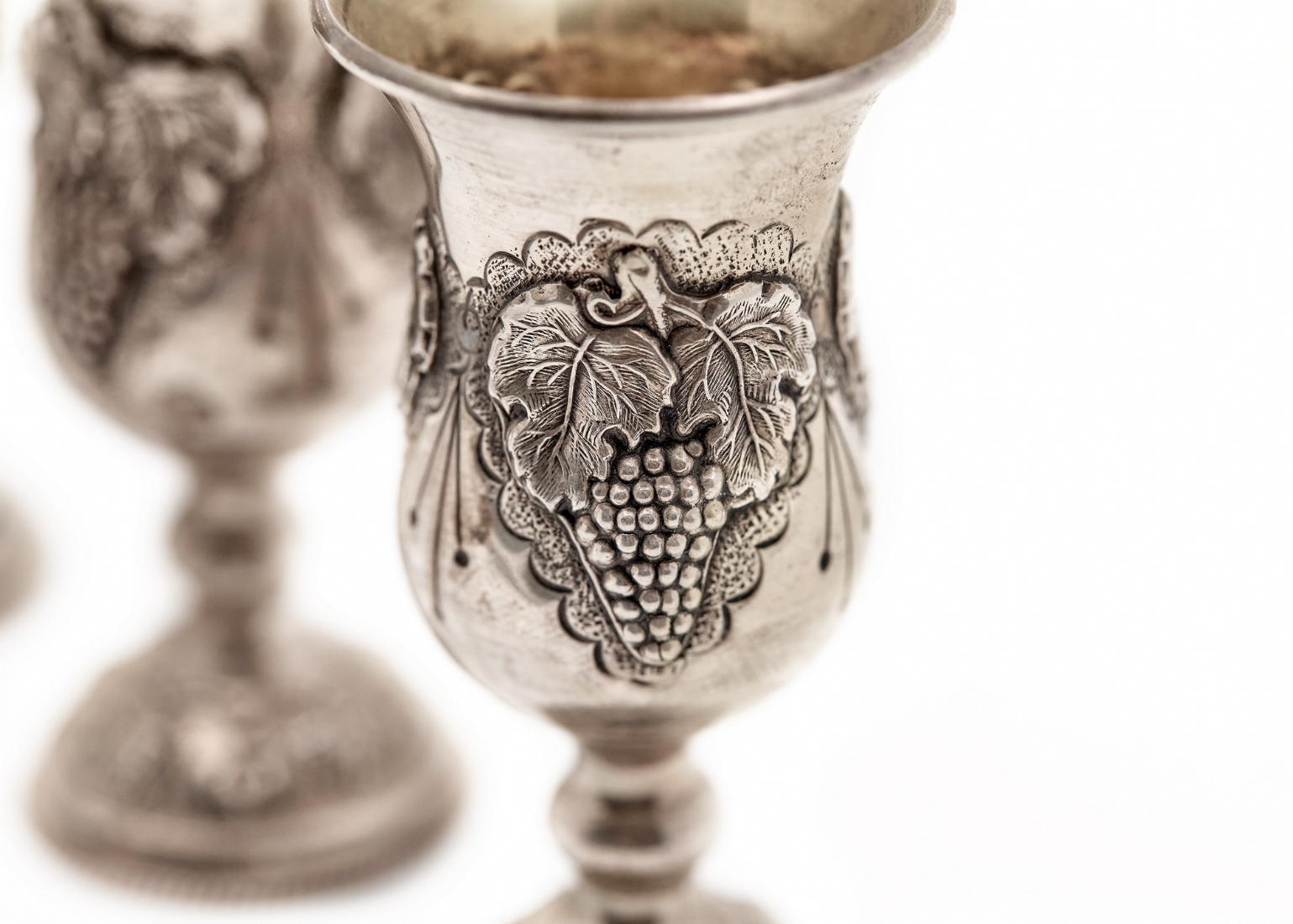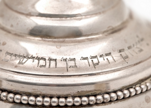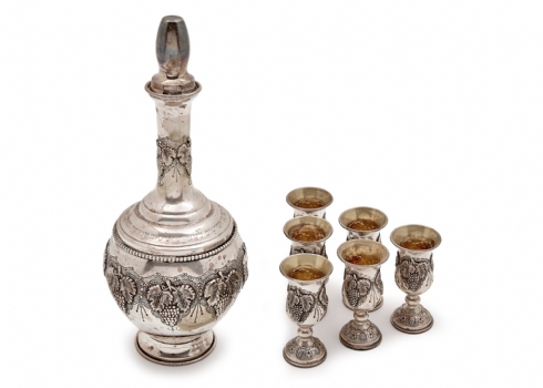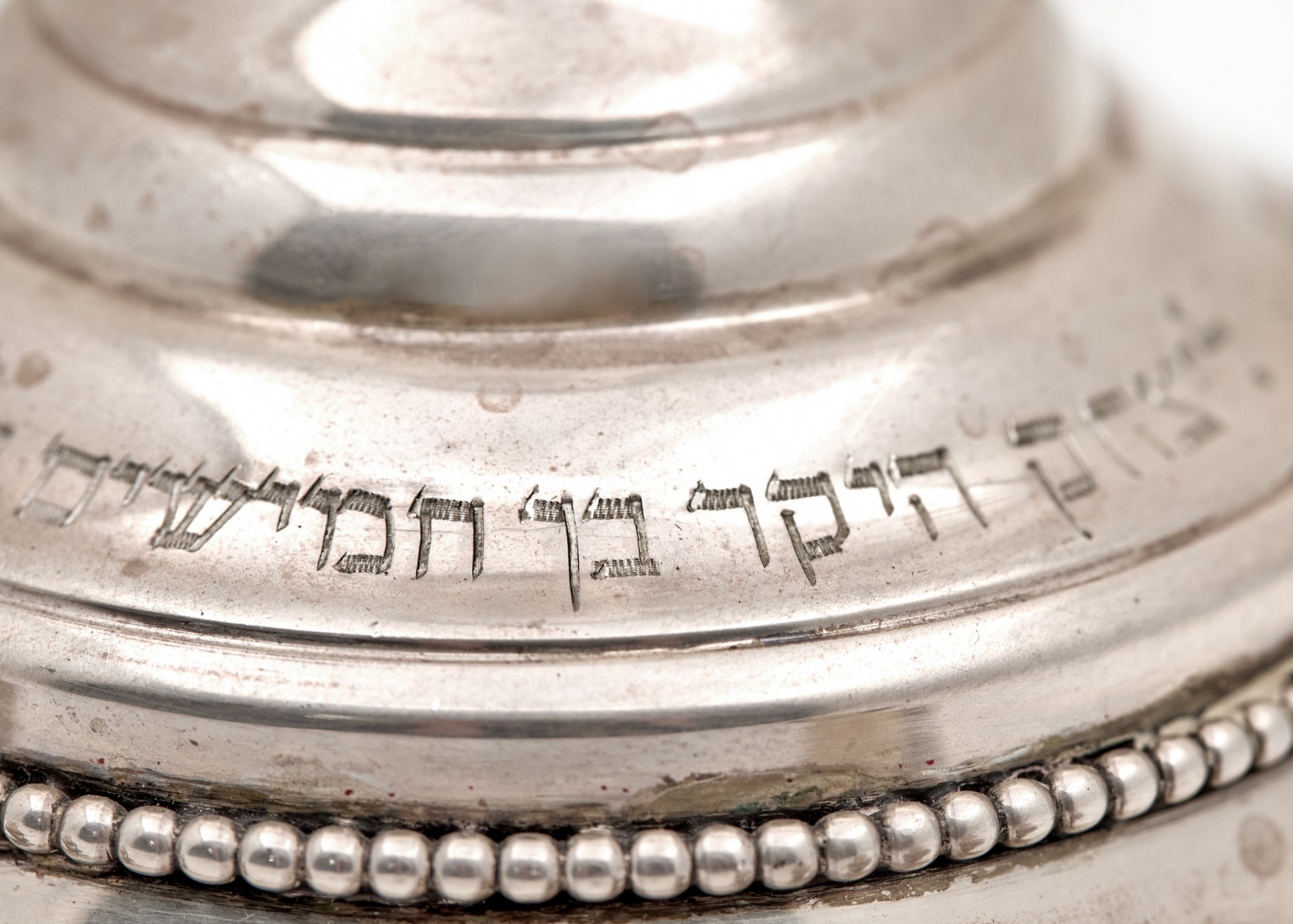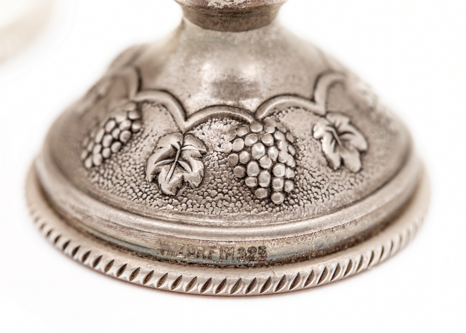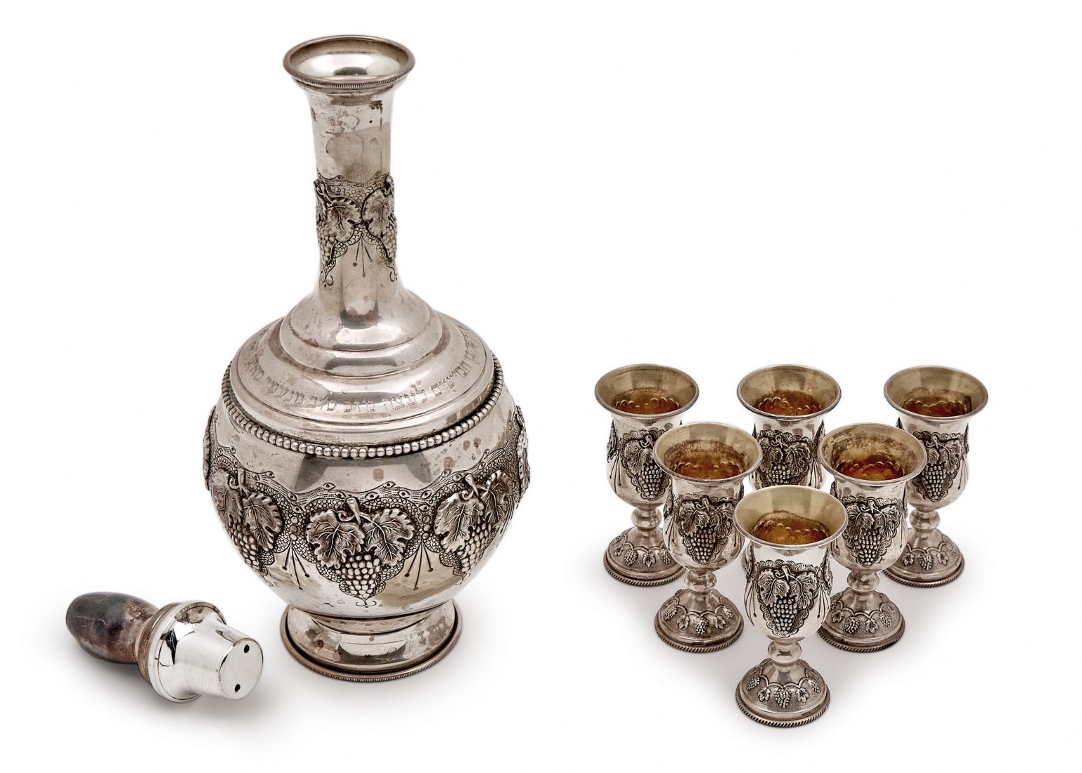 סט קידוש מהודר מתוצרת חברת 'הצורפים' עשוי כסף 'סטרלינג' (925) חתום ונושא הקדשה