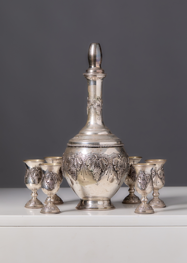 כולל בקבוק יין ופקק תואם ועוד 6 גביעי קידוש מצופים בזהב בחלקם הפנימי