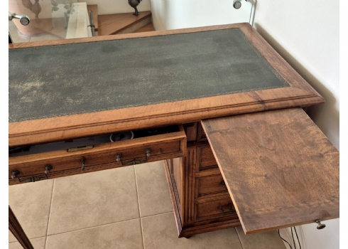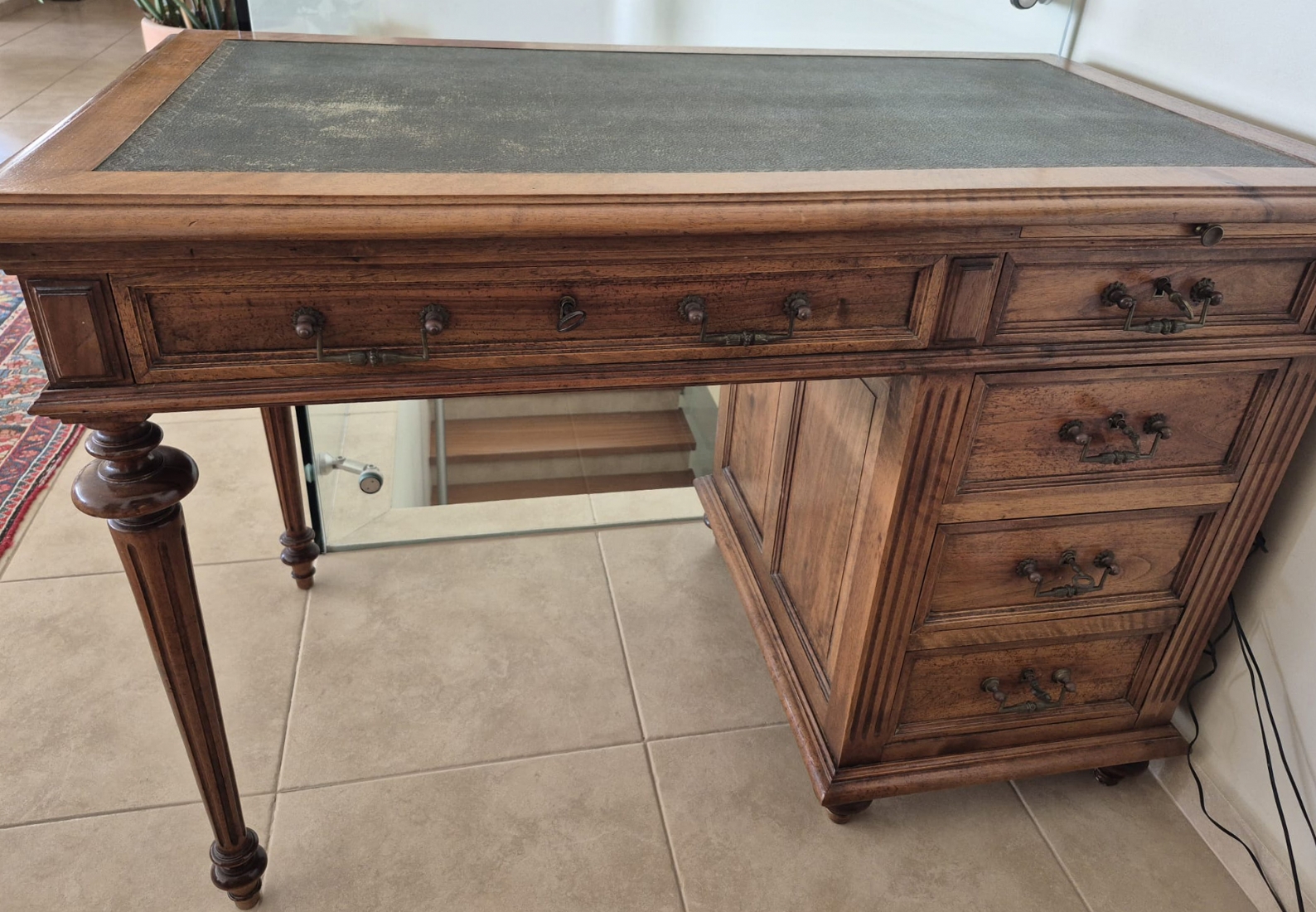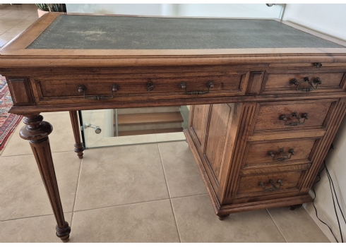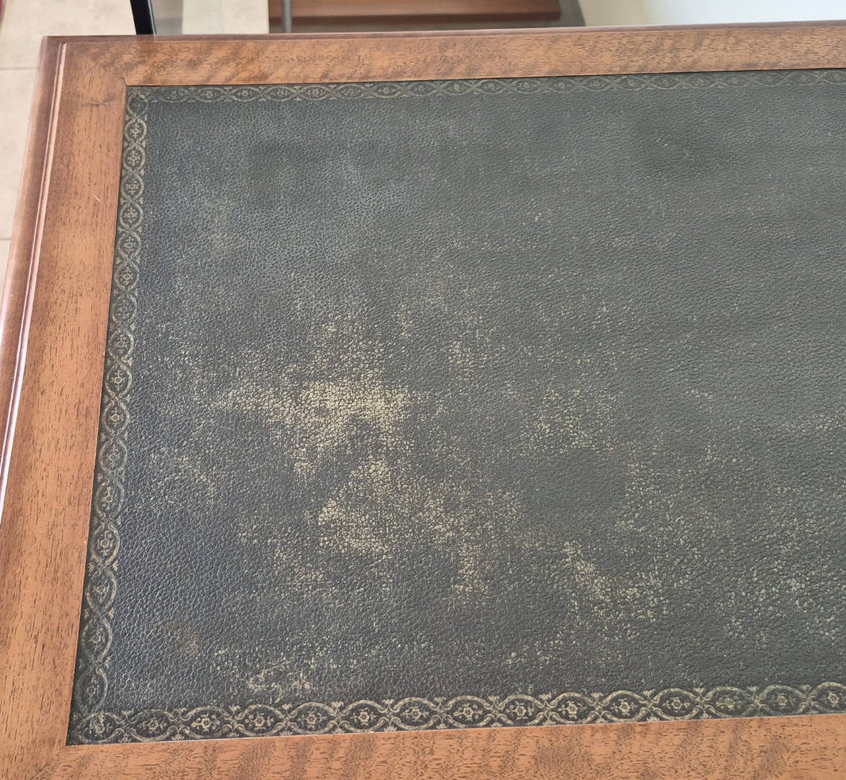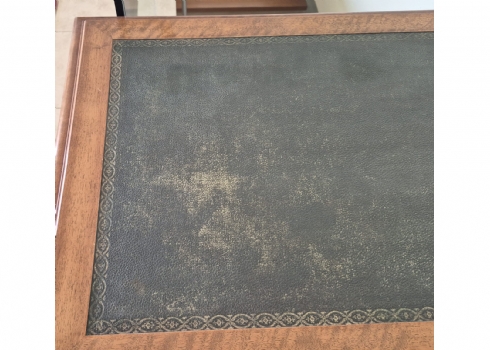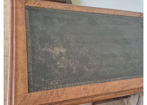 שולחן כתיבה עץ קלאסי עם משטח עליון מצופה עור ירוק מעוטר