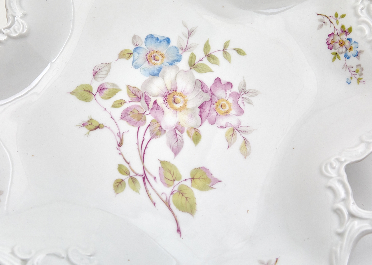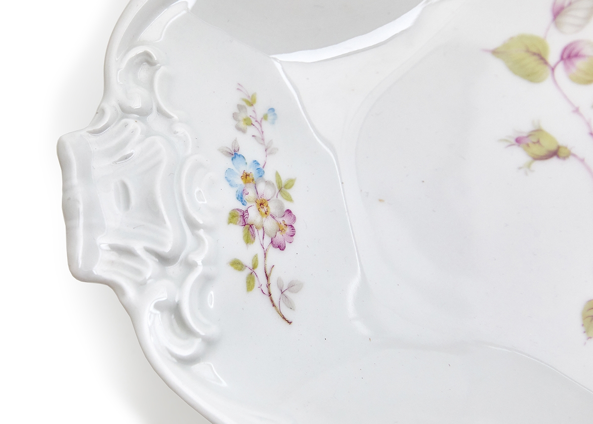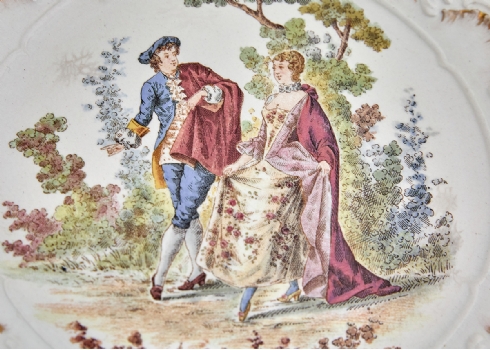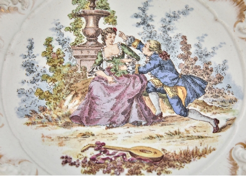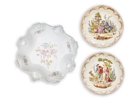 זוג צלחות צרפתיות עתיקות ויפות מתוצרת: 'סארגמין' (Sarreguemines) ועוד צלחת