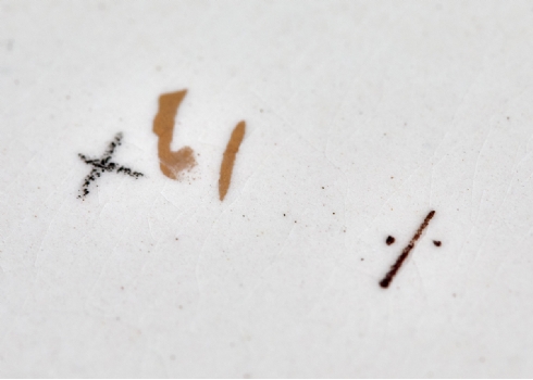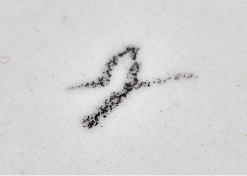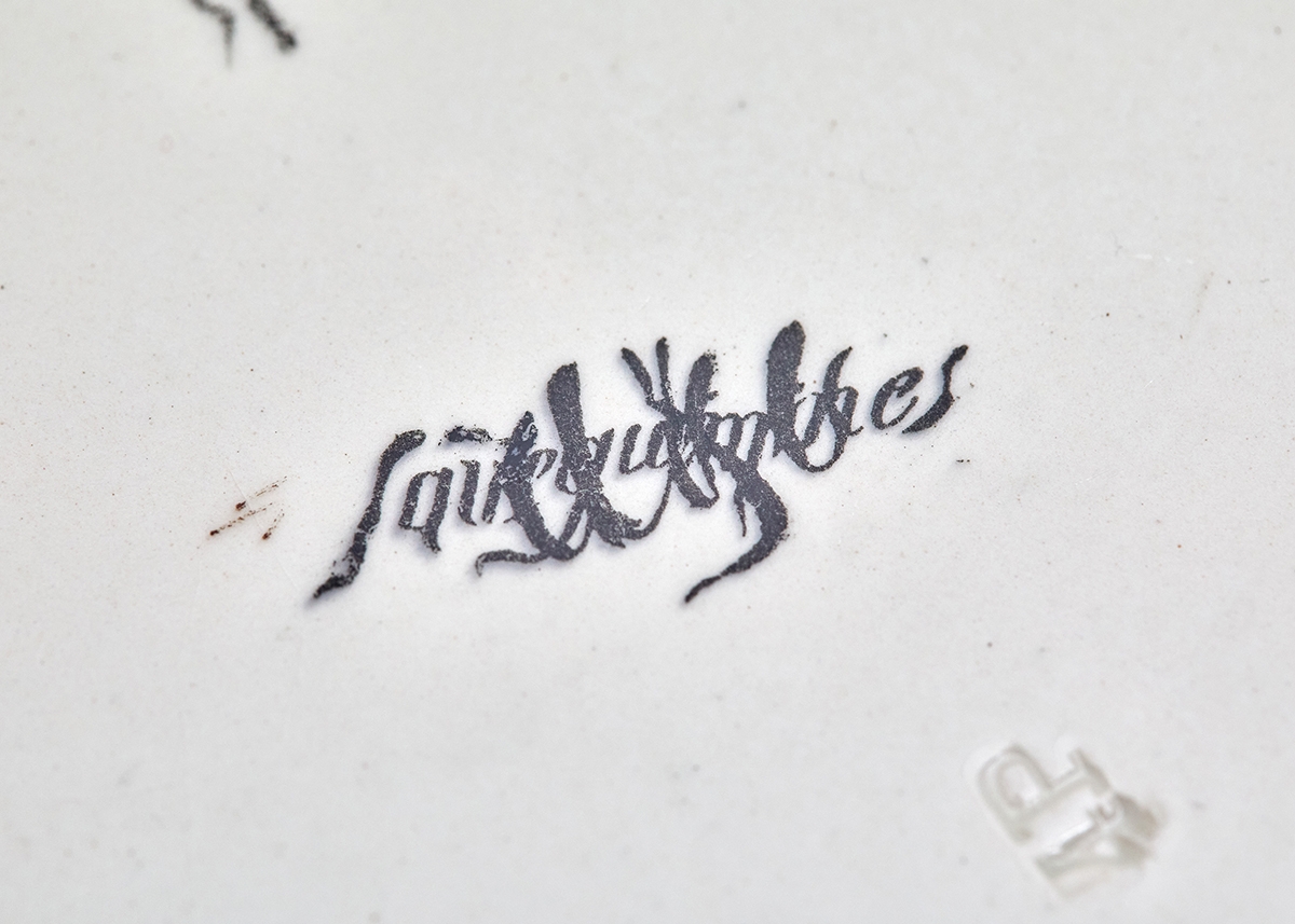 שתי הצלחות מעוטרות בהדפסים וחתומות שבה השתמש היצרן בין השנים: 1875 - 1900, קוטר: 21.5 ס"מ
