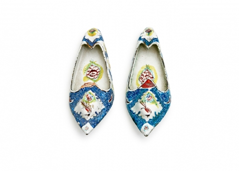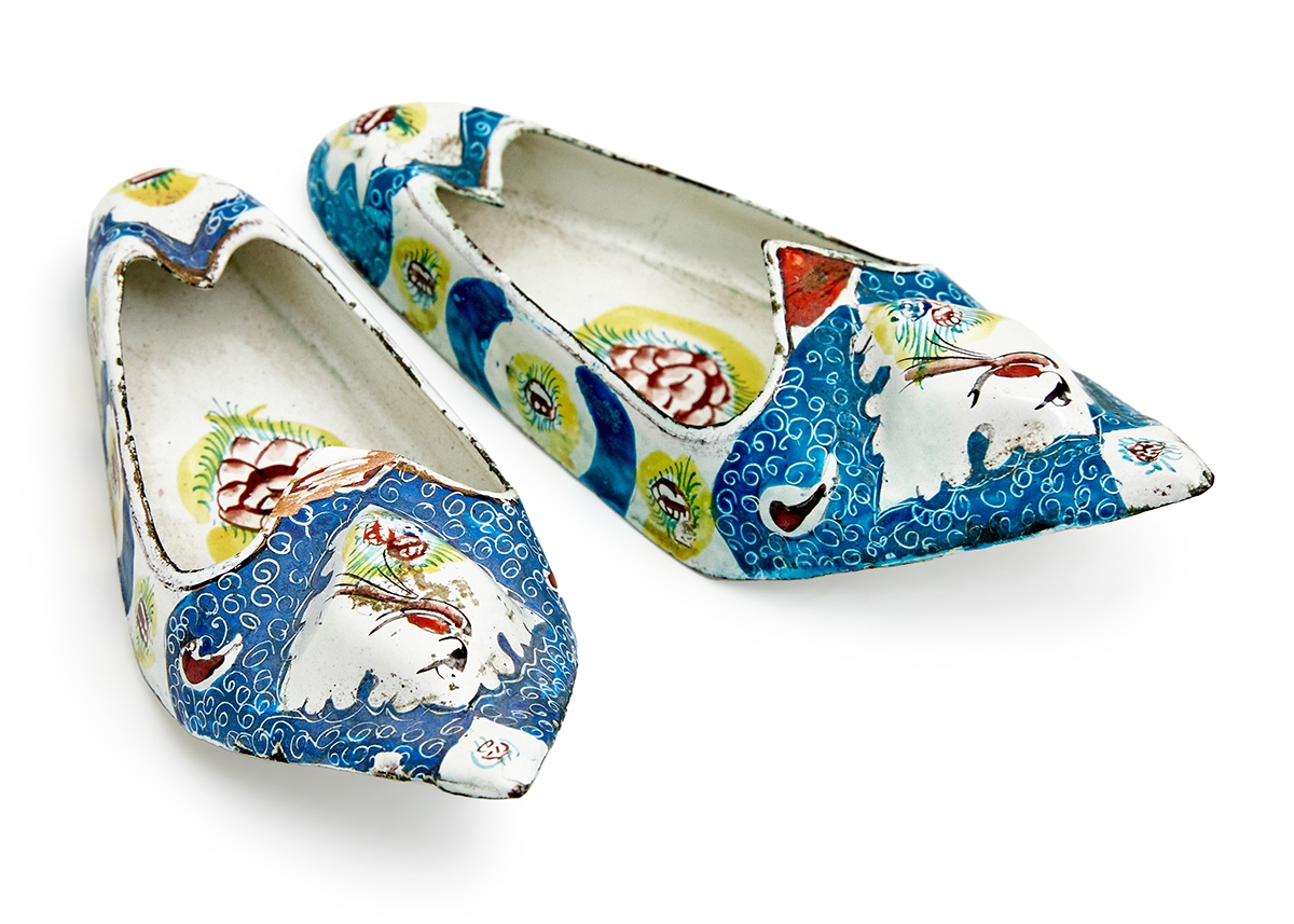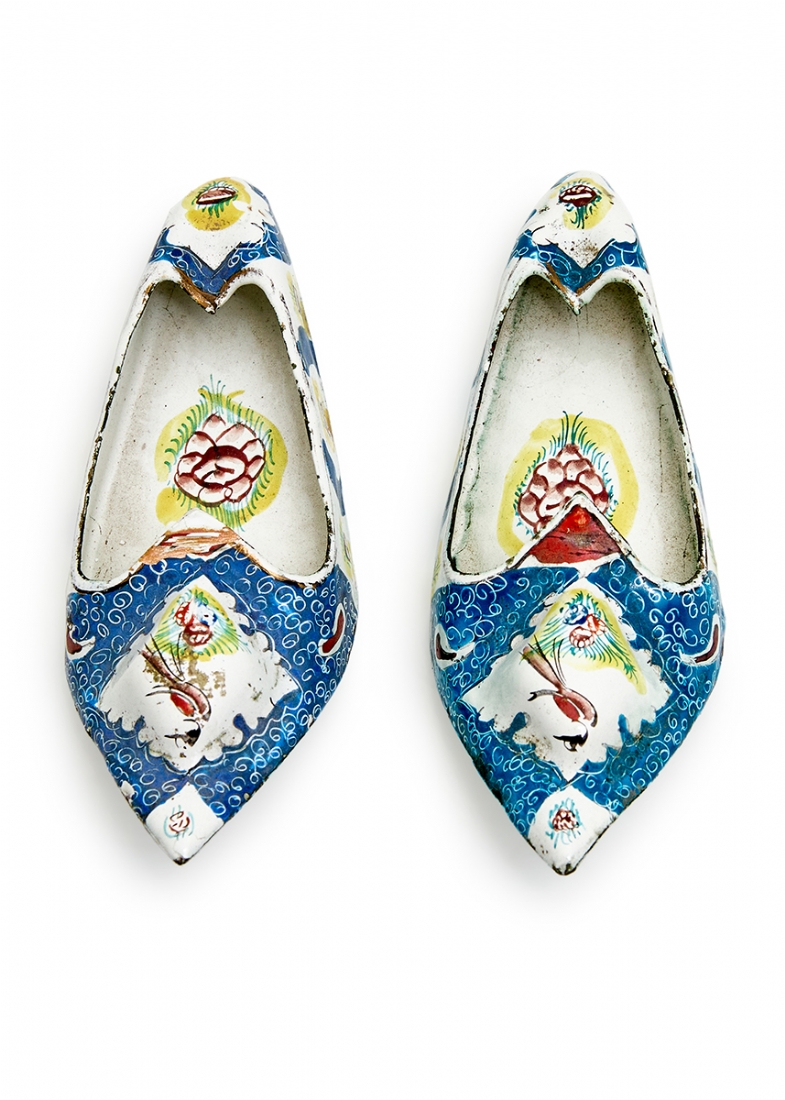זוג מאפרות שולחניות פרסיות עשויות נחושת ומעוטרות בטכניקת מינהקארי או מינה-קארי