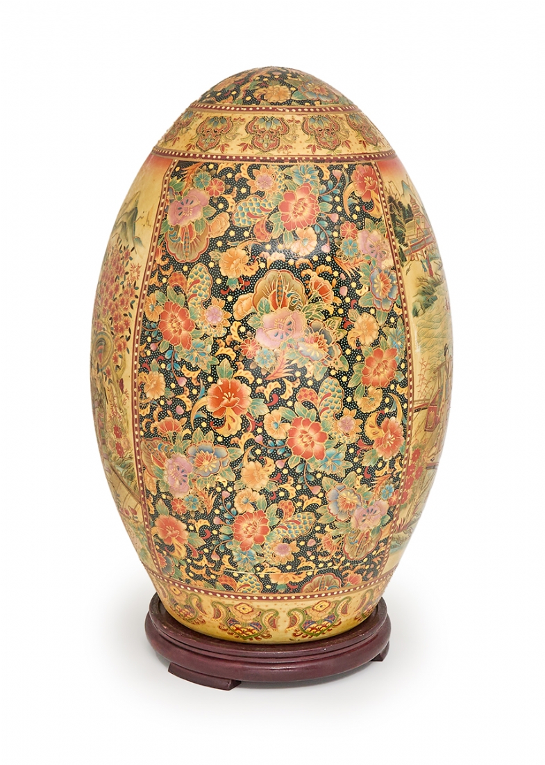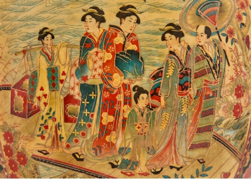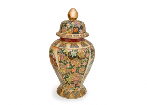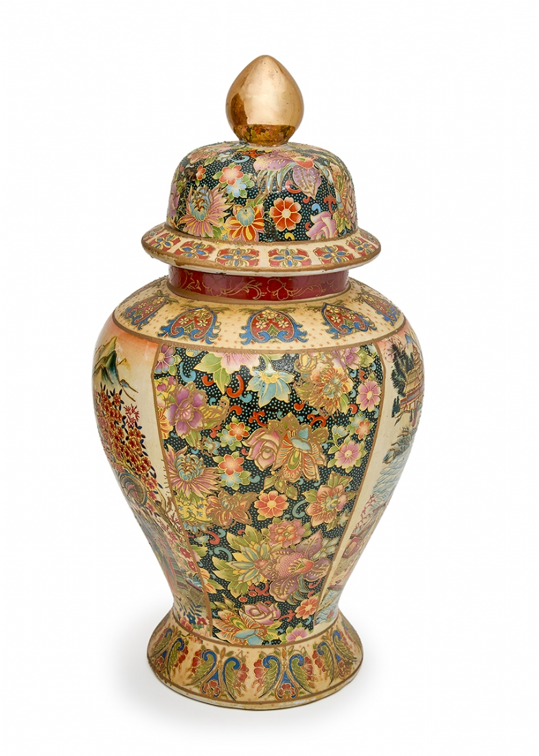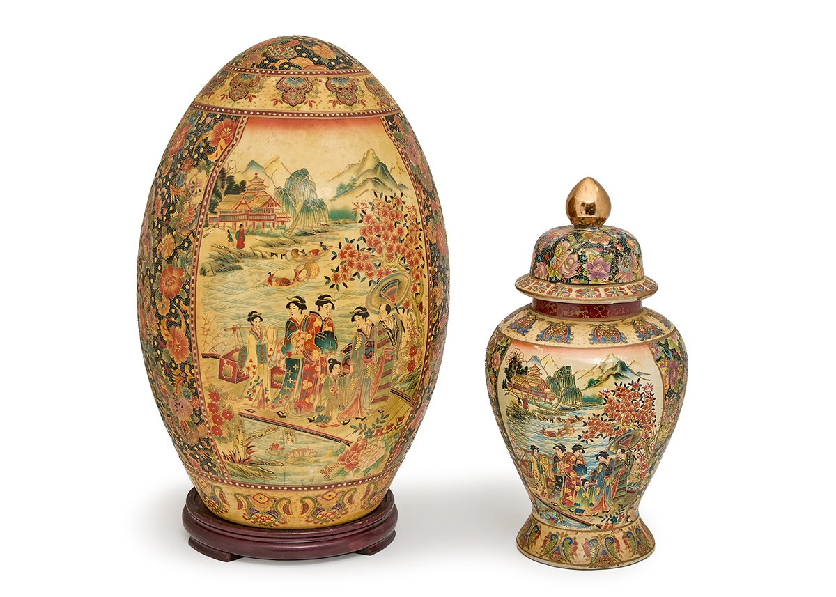 2 חפצי נוי סינים דקורטיביים בסגנון 'סטסומה' (Satsuma) יפני מעוטרים