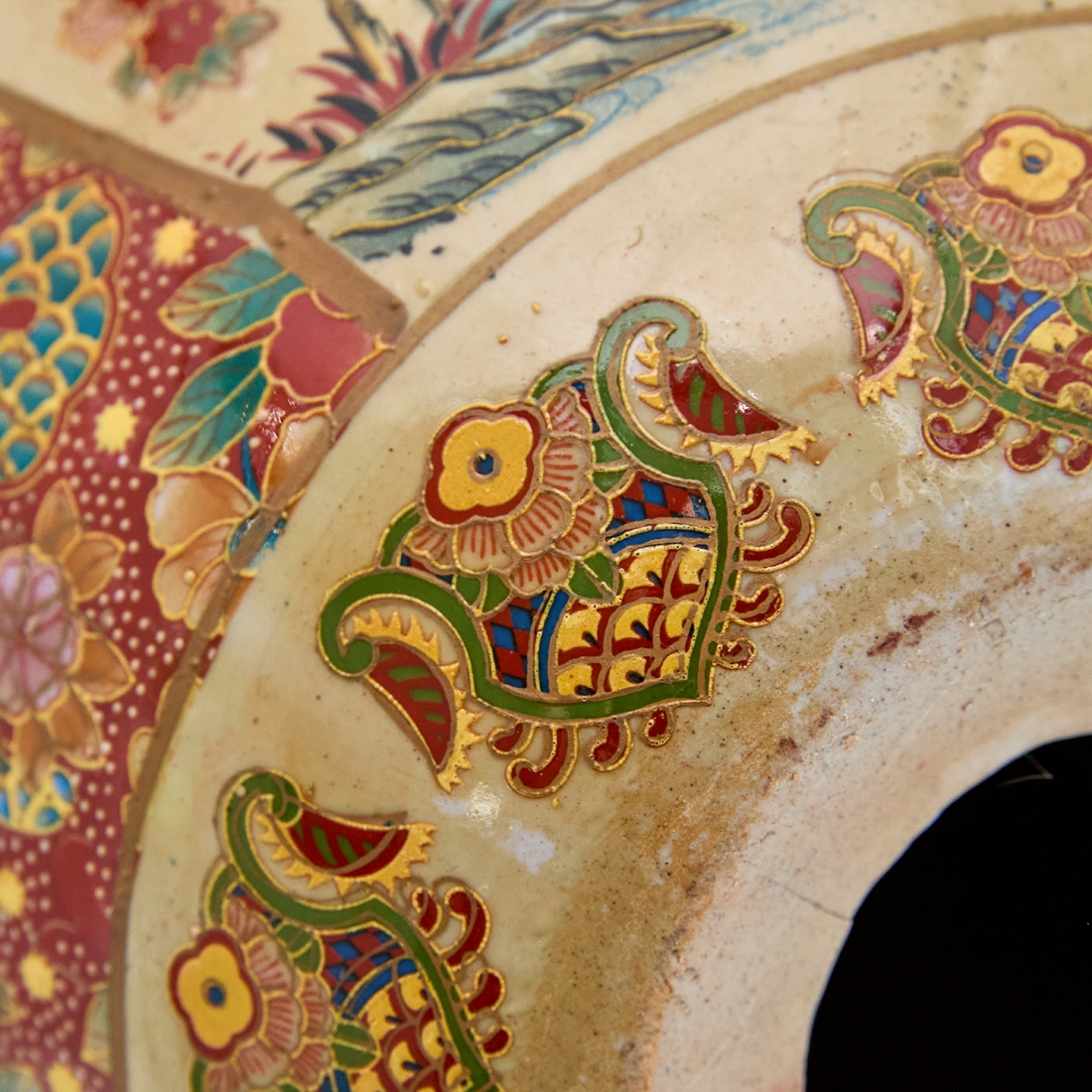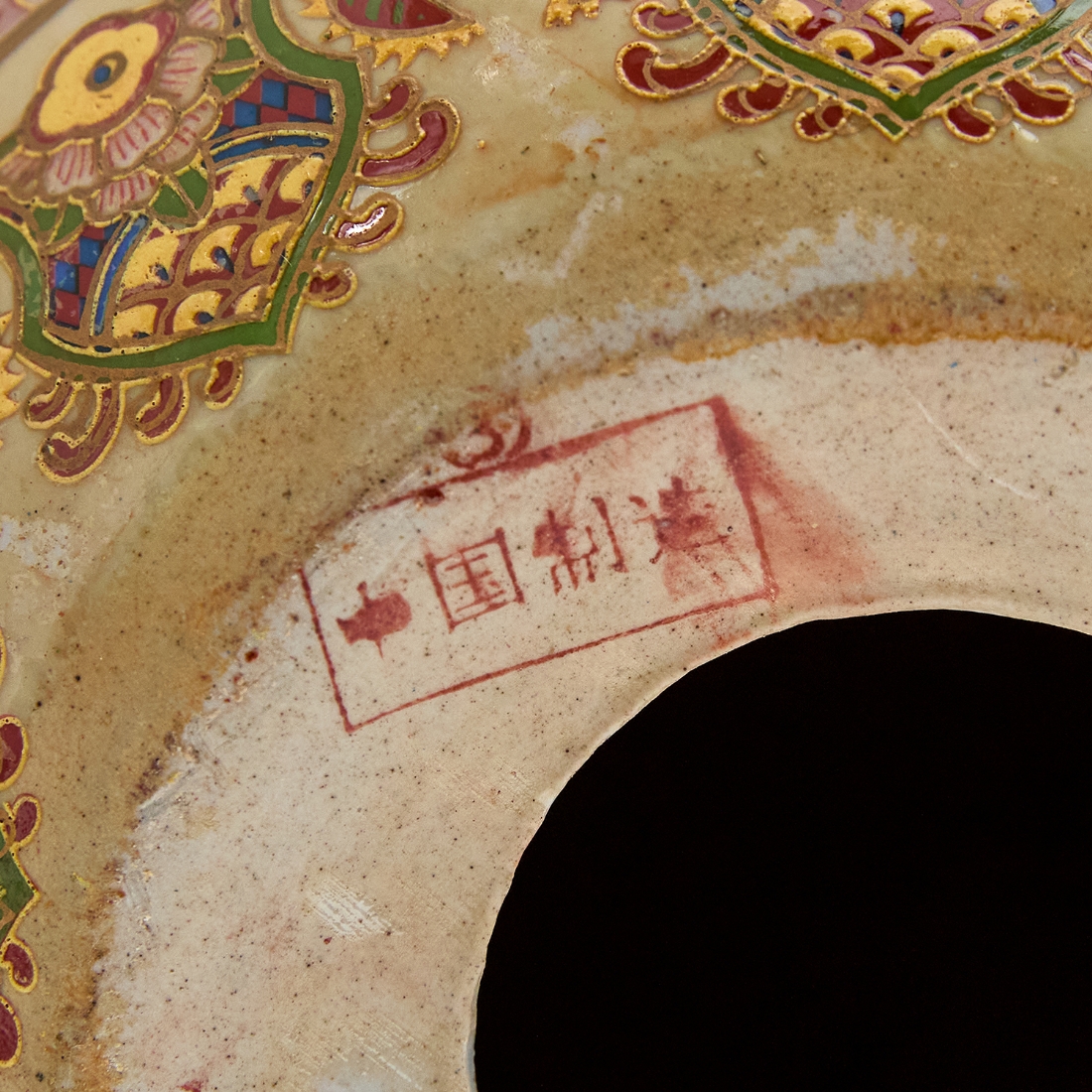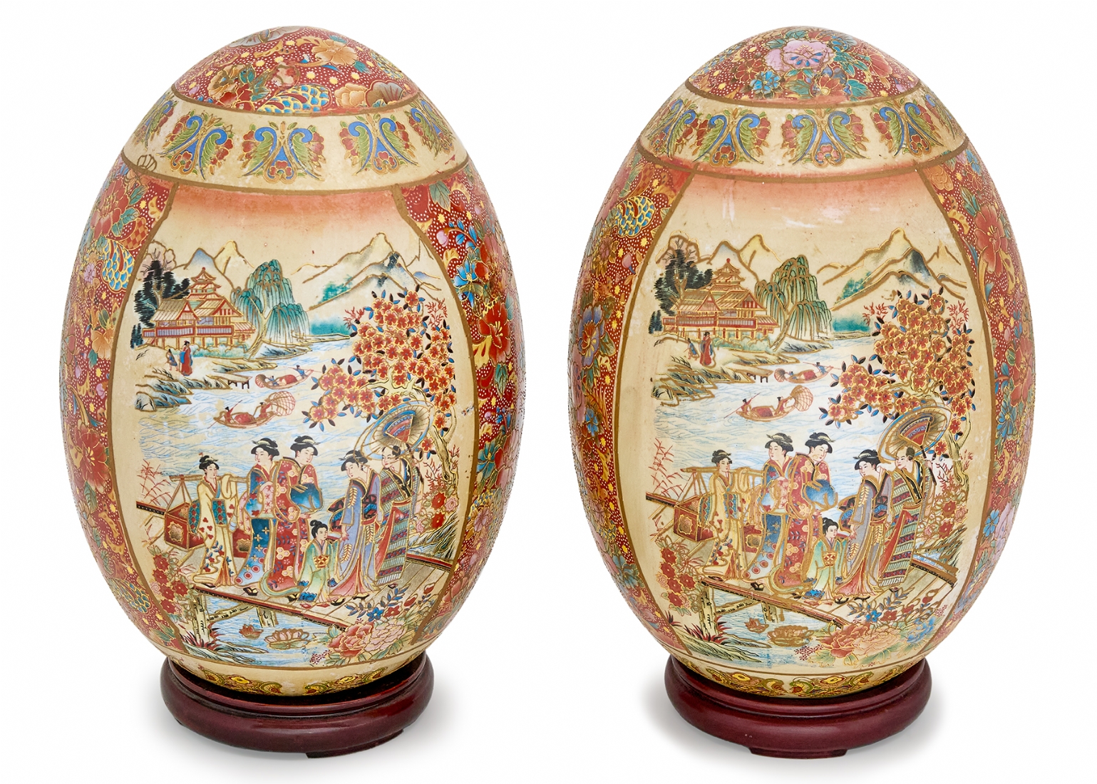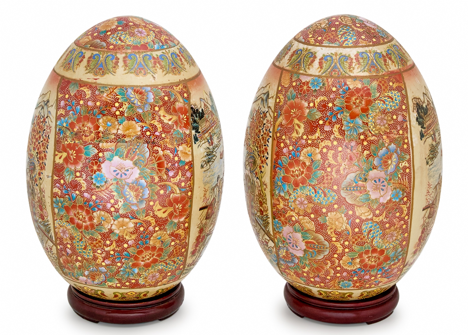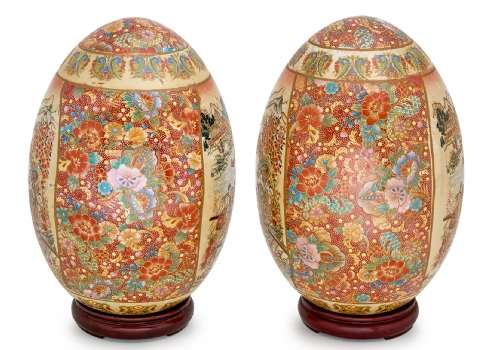 2 חפצי נוי סינים דקורטיביים בסגנון 'סטסומה' (Satsuma) יפני מעוצבים בצורת ביצים