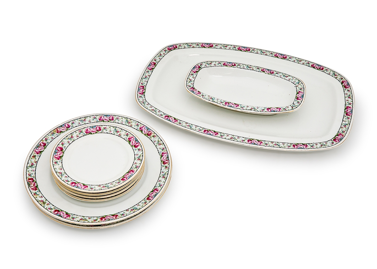 הכולל:צלחת הגשה רוחב: 43 ס"מקערה רוחב: 23 ס"מ2 צלחות קוטר: 24 ס"מ4 צלחות קוטר: 15 ס"מ