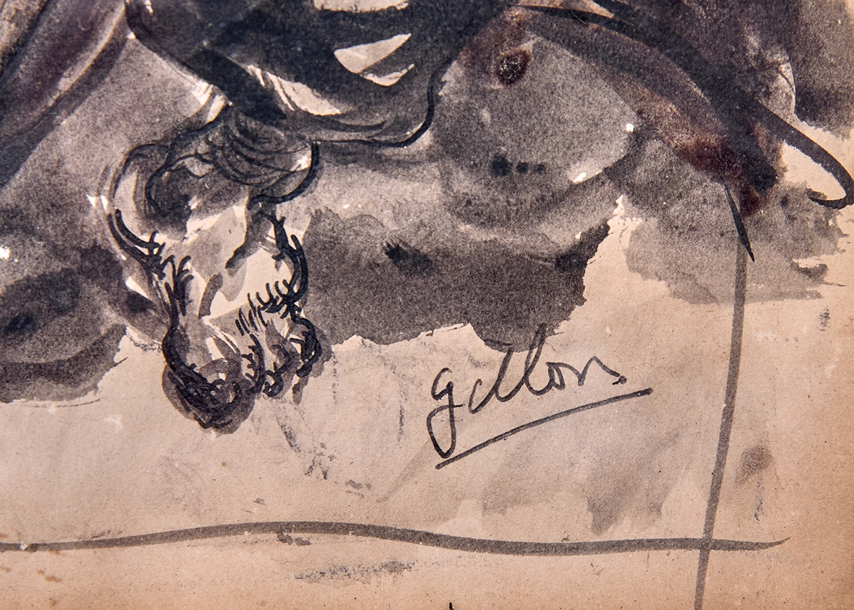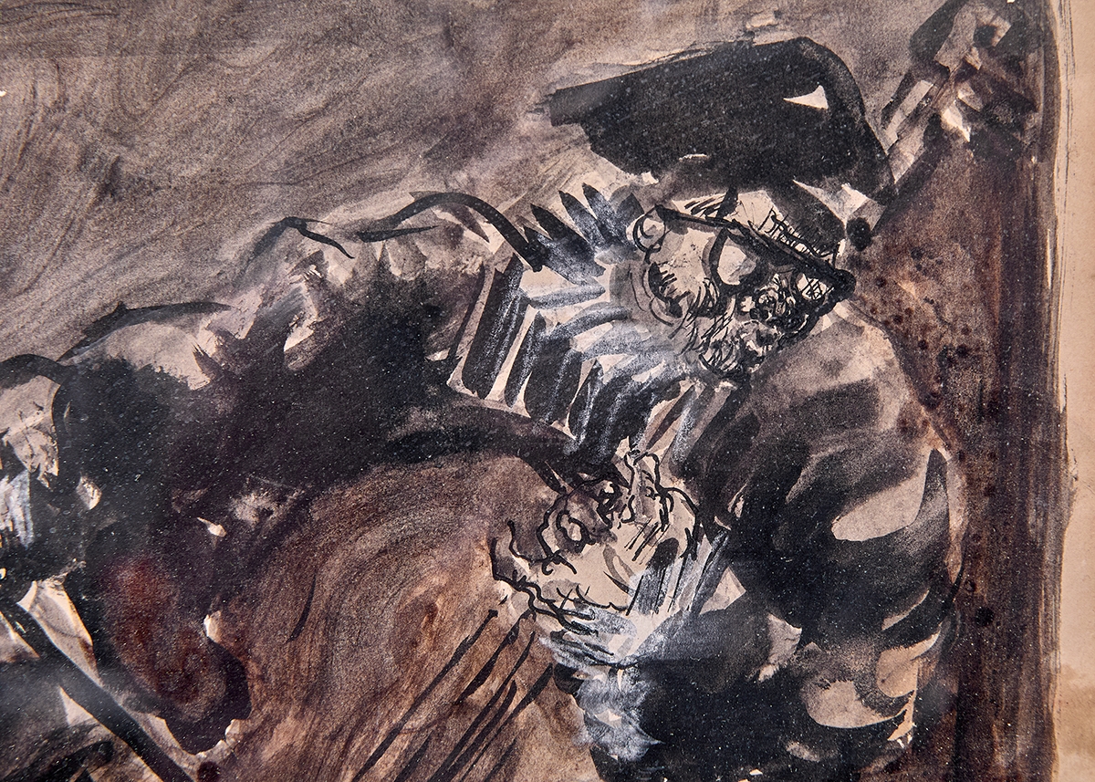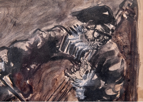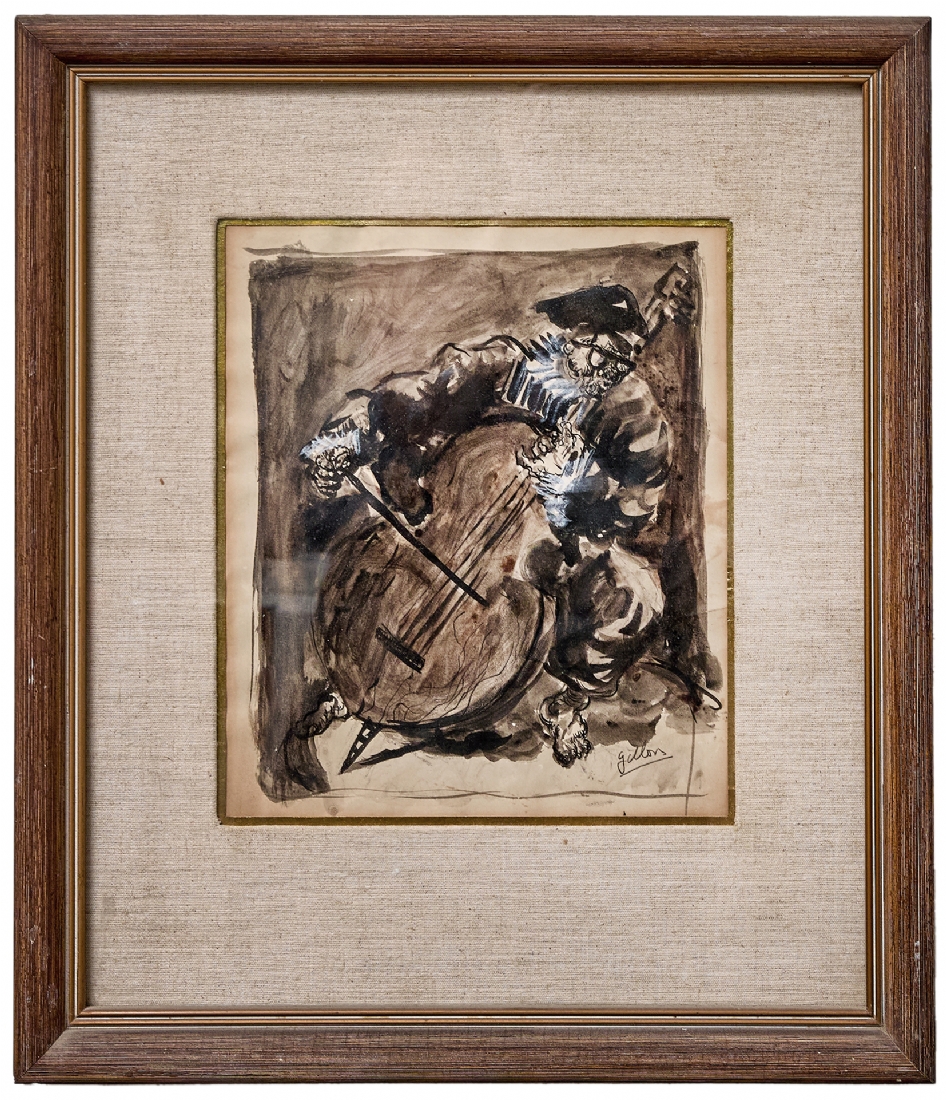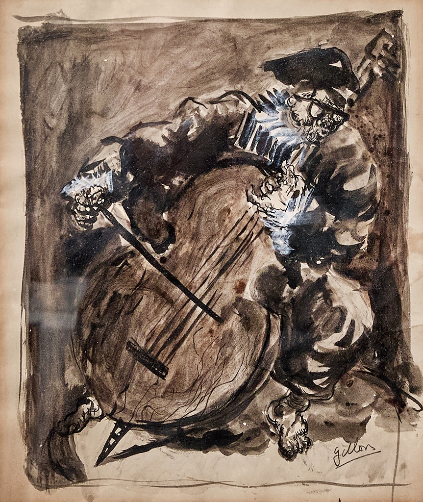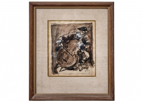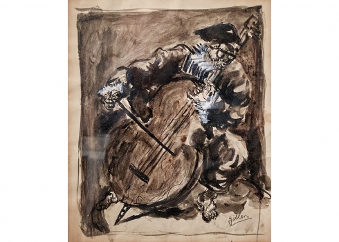 'נגן הקונטרבס' - אקוורל על נייר, חתום