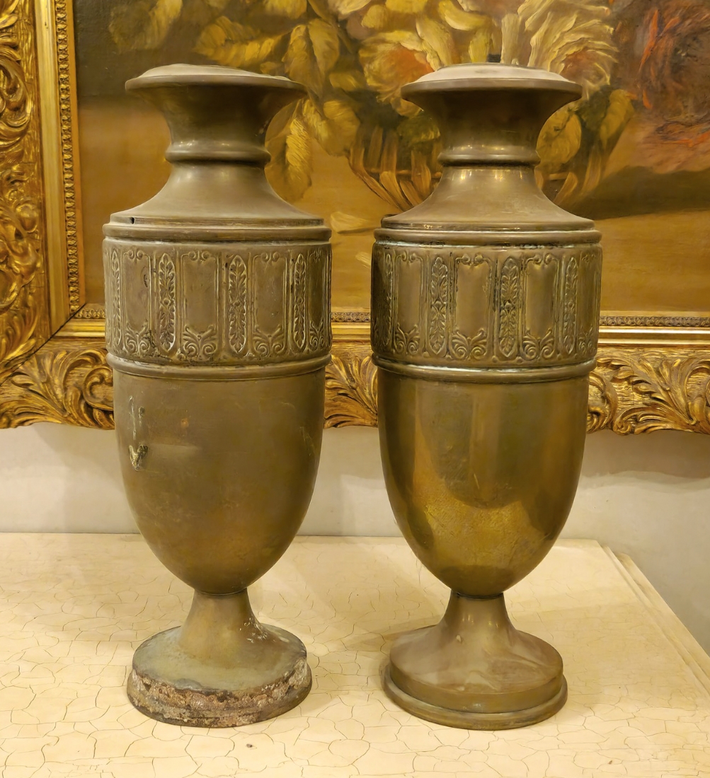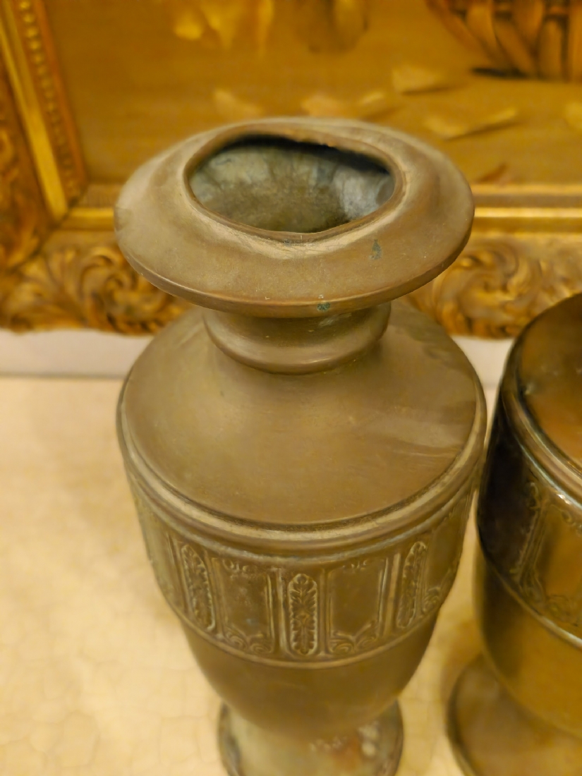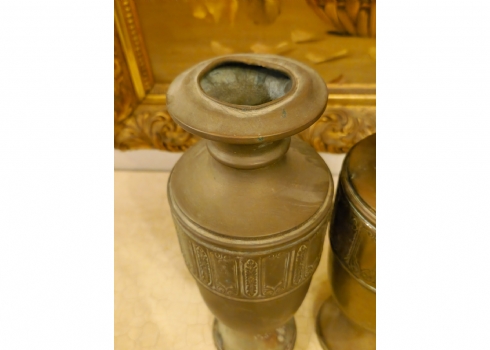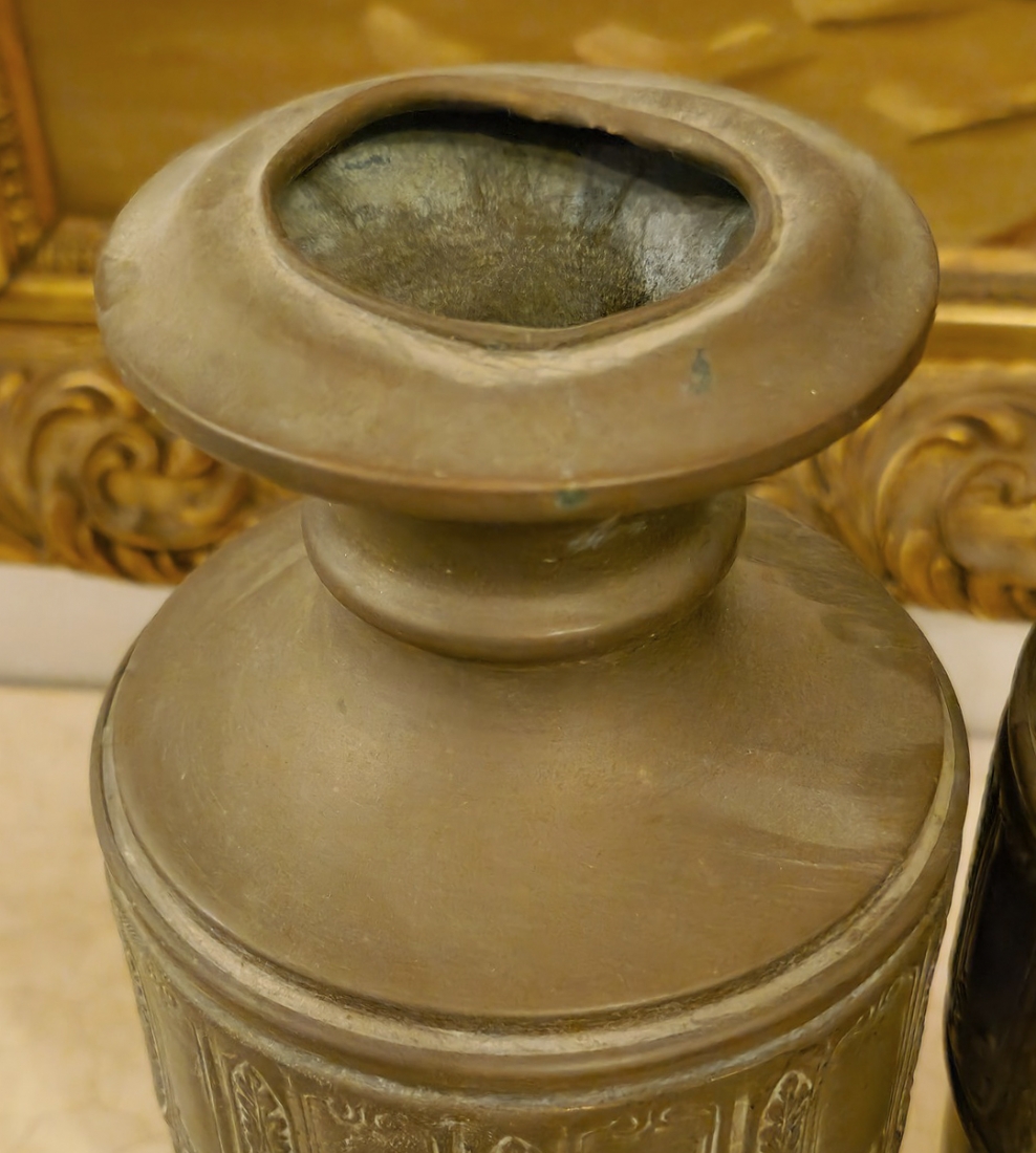זוג אגרטלי מתכת עתיקים עשויים נחושת