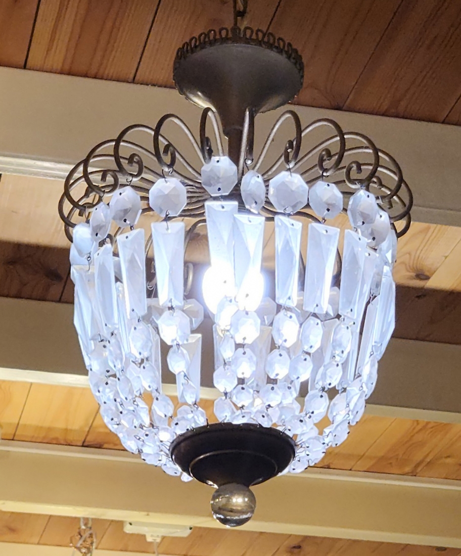 מנורת תקרה בסגנון צרפתי עתיק עשויה מתכת וגדילי זכוכית