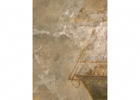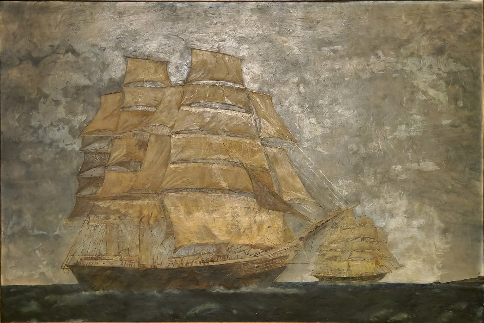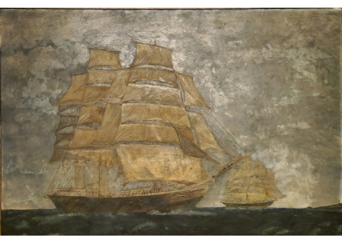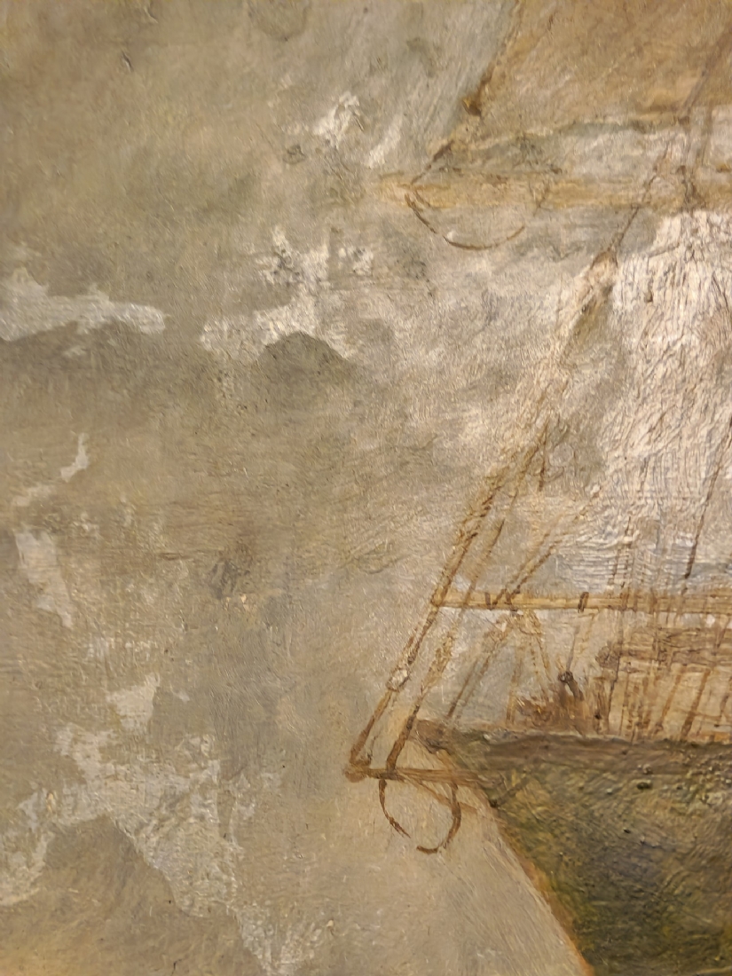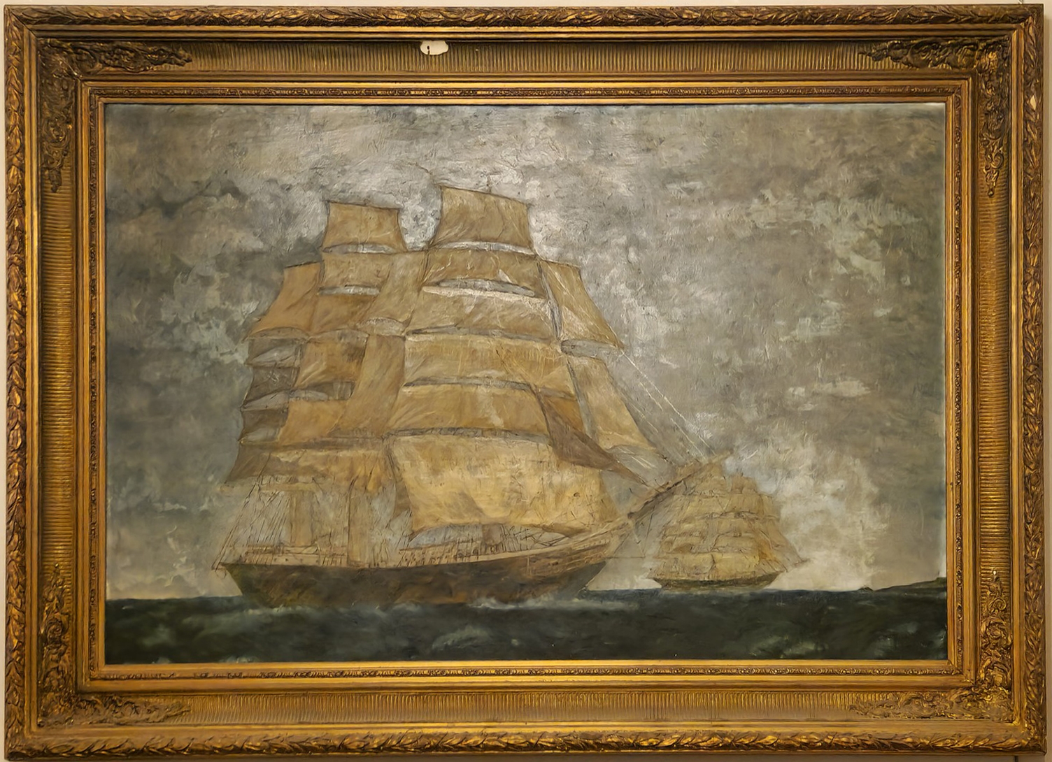 אוניות מפרש - שמן על לוח לא חתום, נתון במסגרת עתיקה נאה