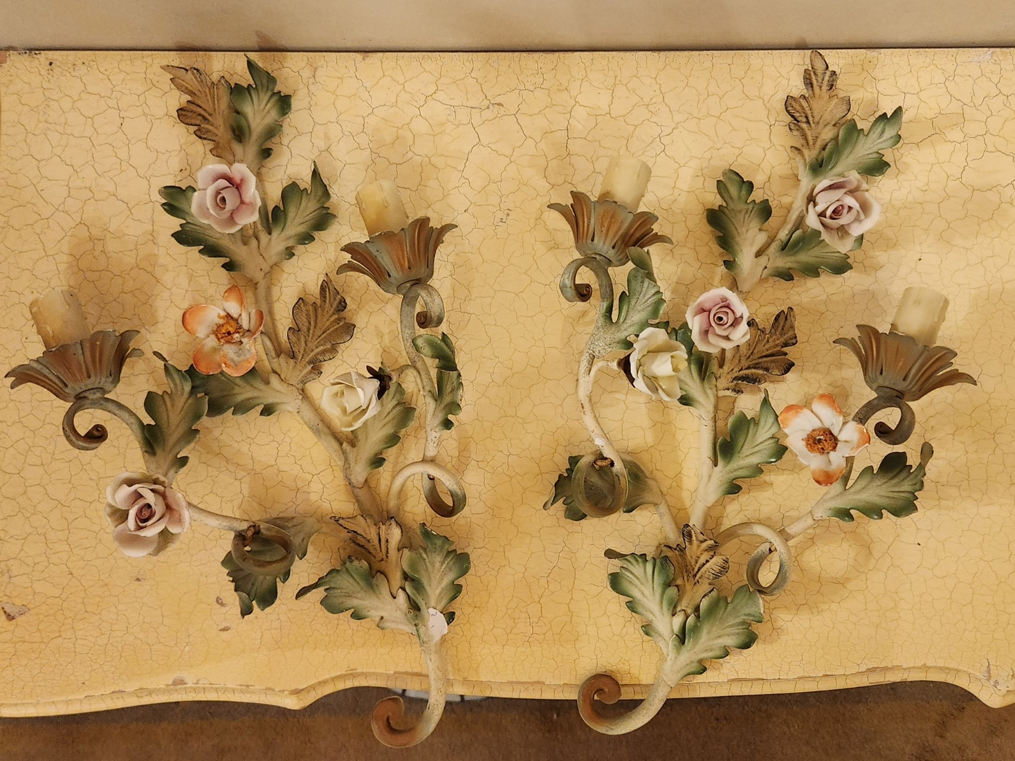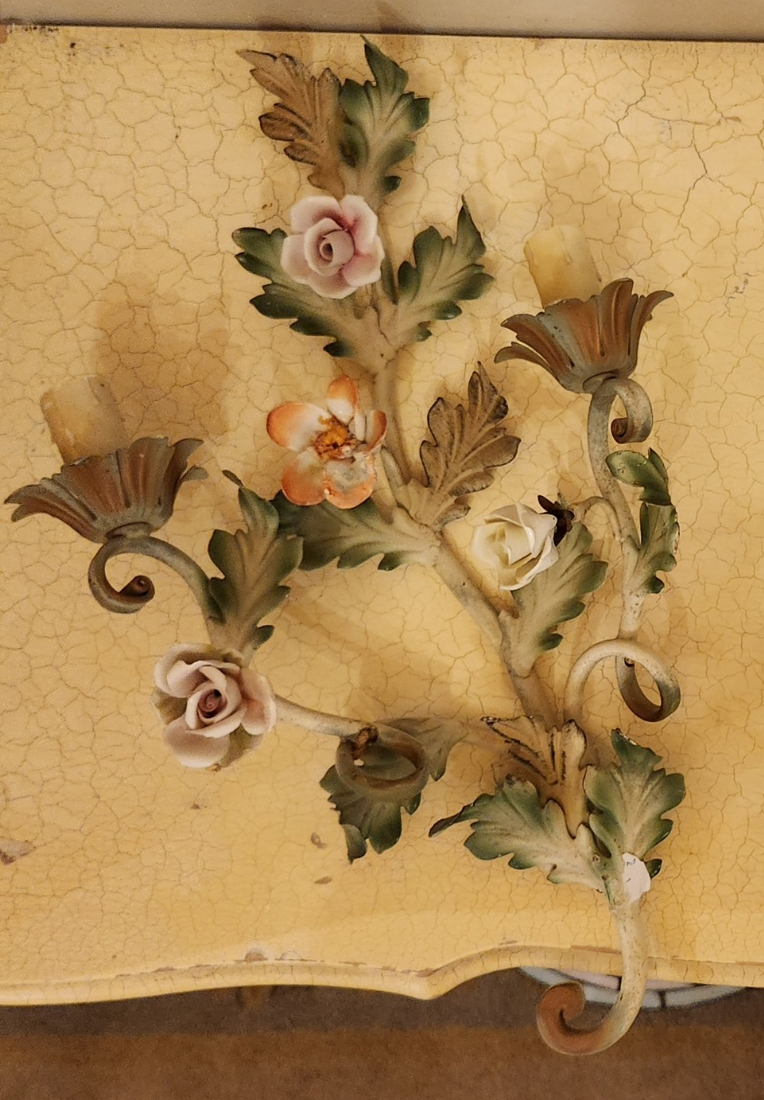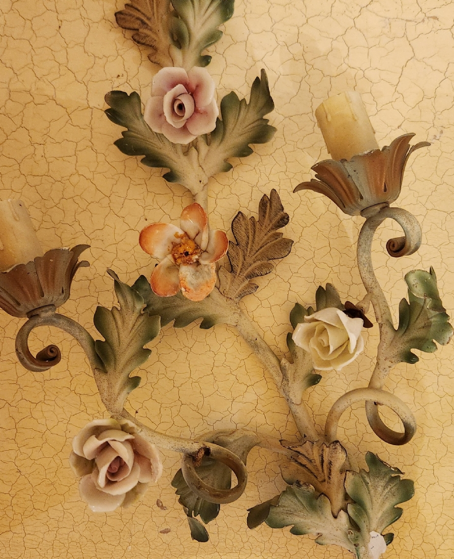 שתי מנורות קיר עשויות מתכת צבועה באמייל צבעוני
