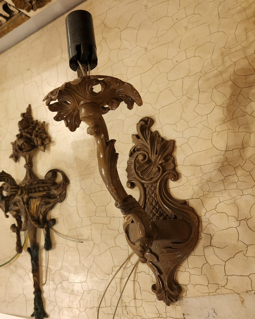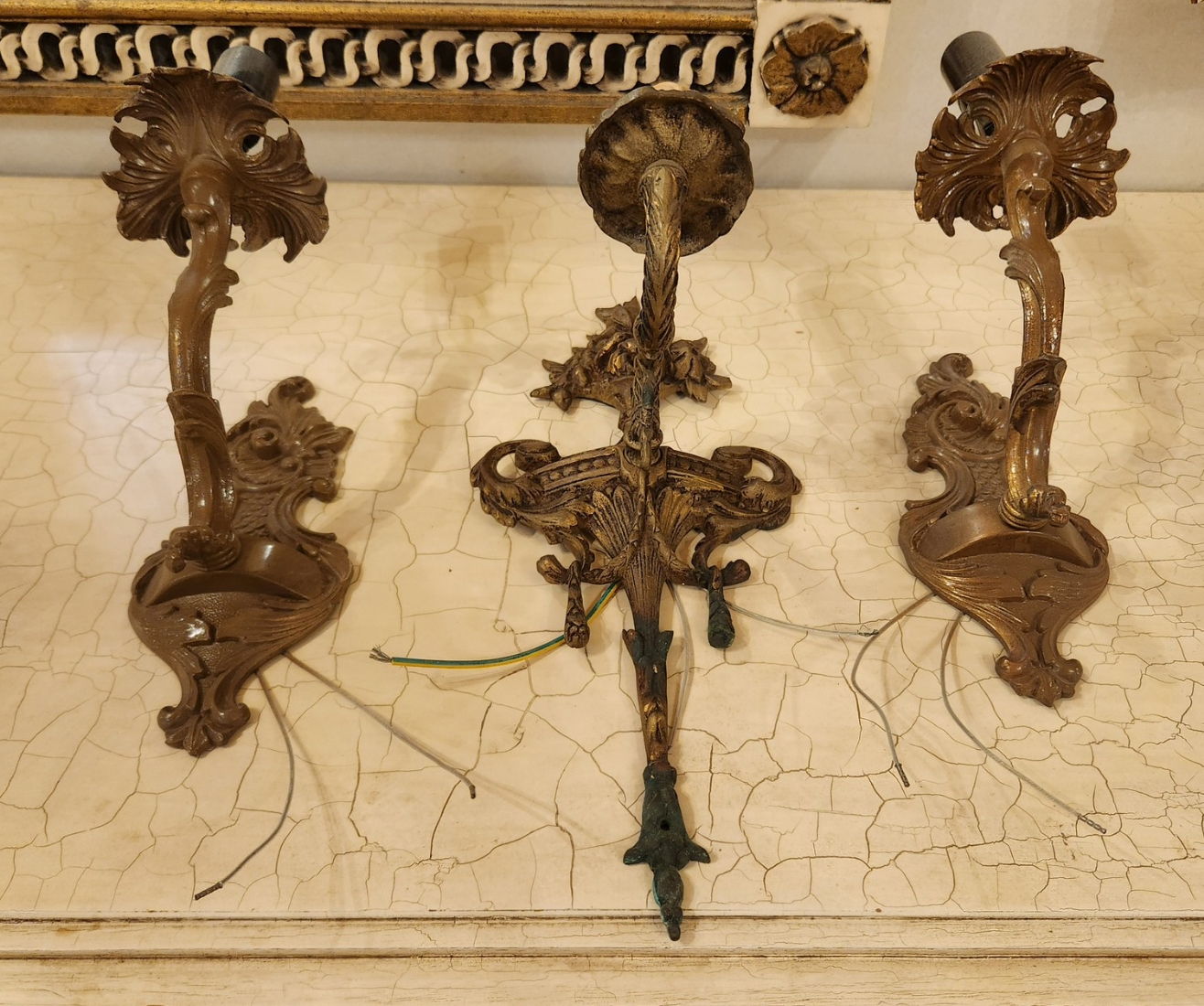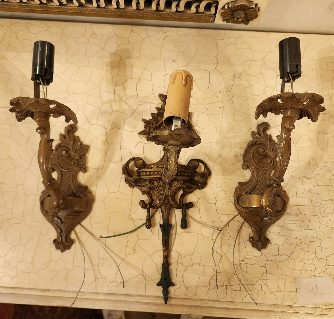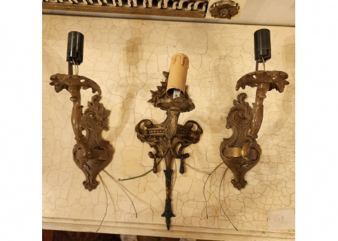 שלוש מנורות קיר בסגנון צרפתי עתיק עשויות מתכת
