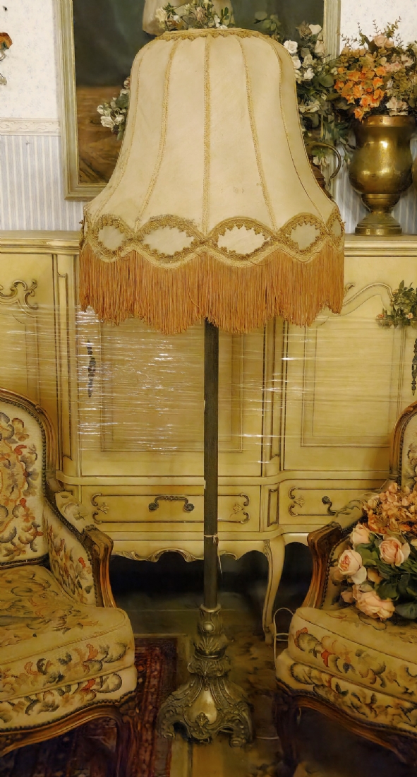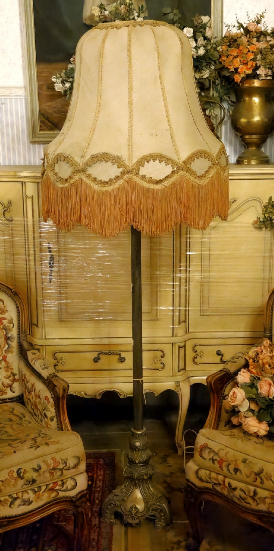 מנורת רצפה גבוהה עשויה מתכת ואהיל בד