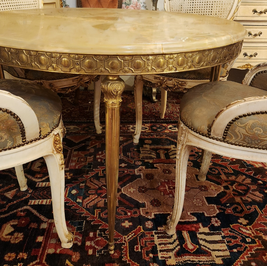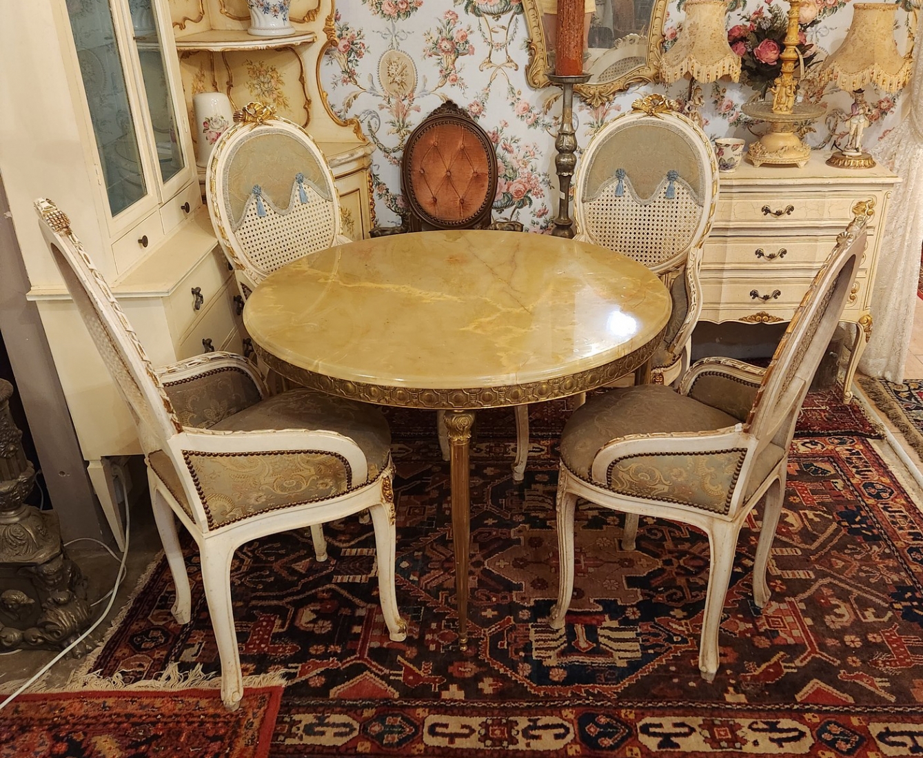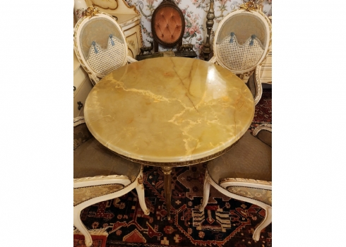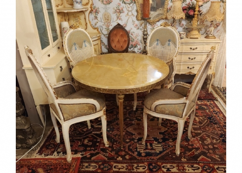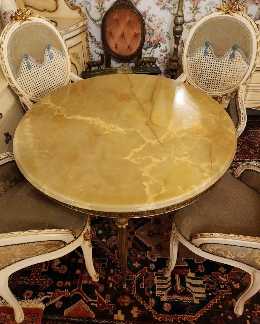 מערכת ריהוט לפינת אוכל - שולחן מתכת עשוי פליז ומשטח עליון עשוי אוניקס ו4 כסאות