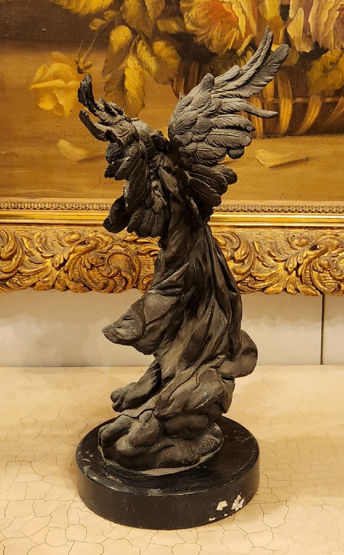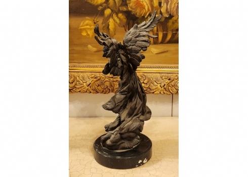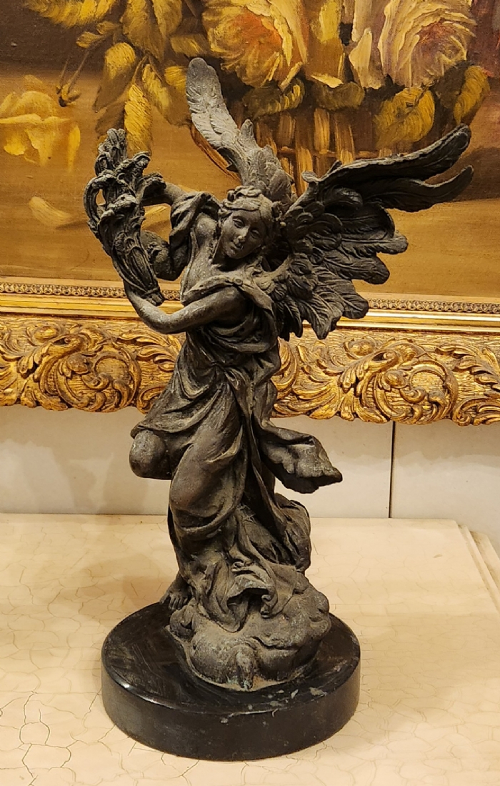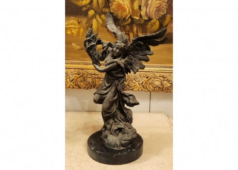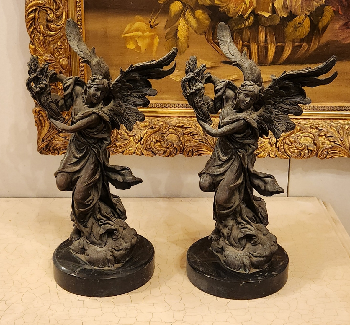 זוג פסלי ברונזה בדמות מלאכים, בסיסים עגולים עשויים שיש שחור