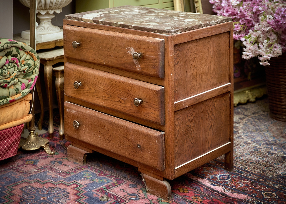 שידת מגרות עשויה עץ ומשטח עליון משיש
