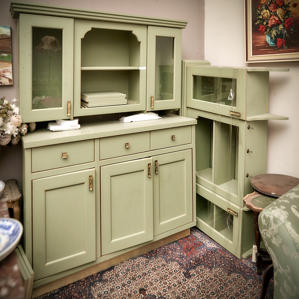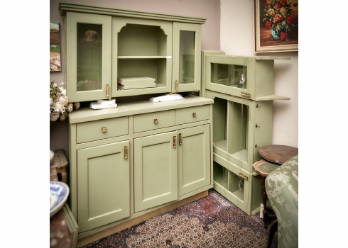 מזנון לחדר אוכל לאחסון כלים עשוי עץ ידיות מתכת וזכוכית
