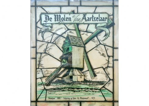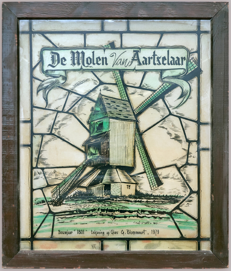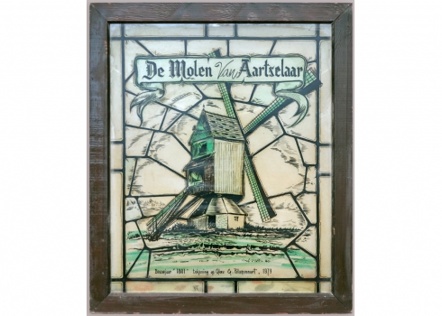 חלון ויטראז הולנדי עשוי זכוכית והלחמות בדיל מסגרת עץ עם הכנה לקופסת אור