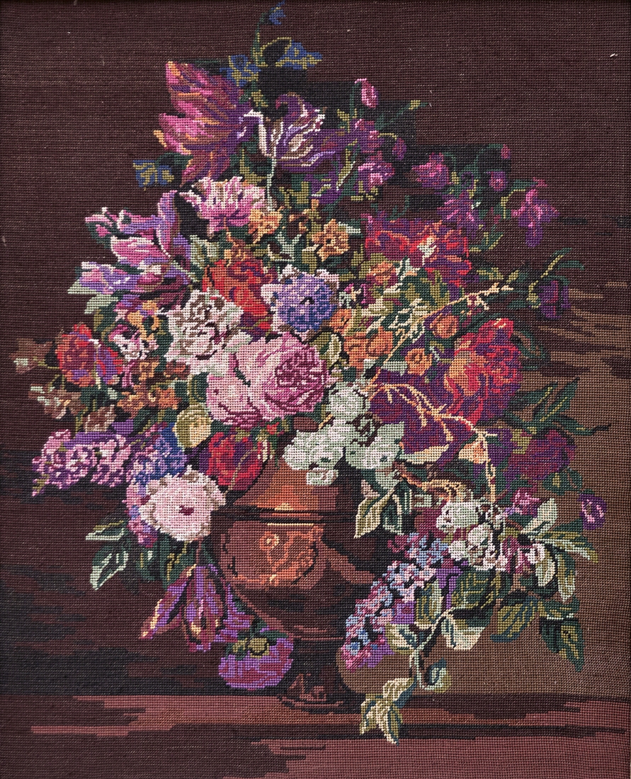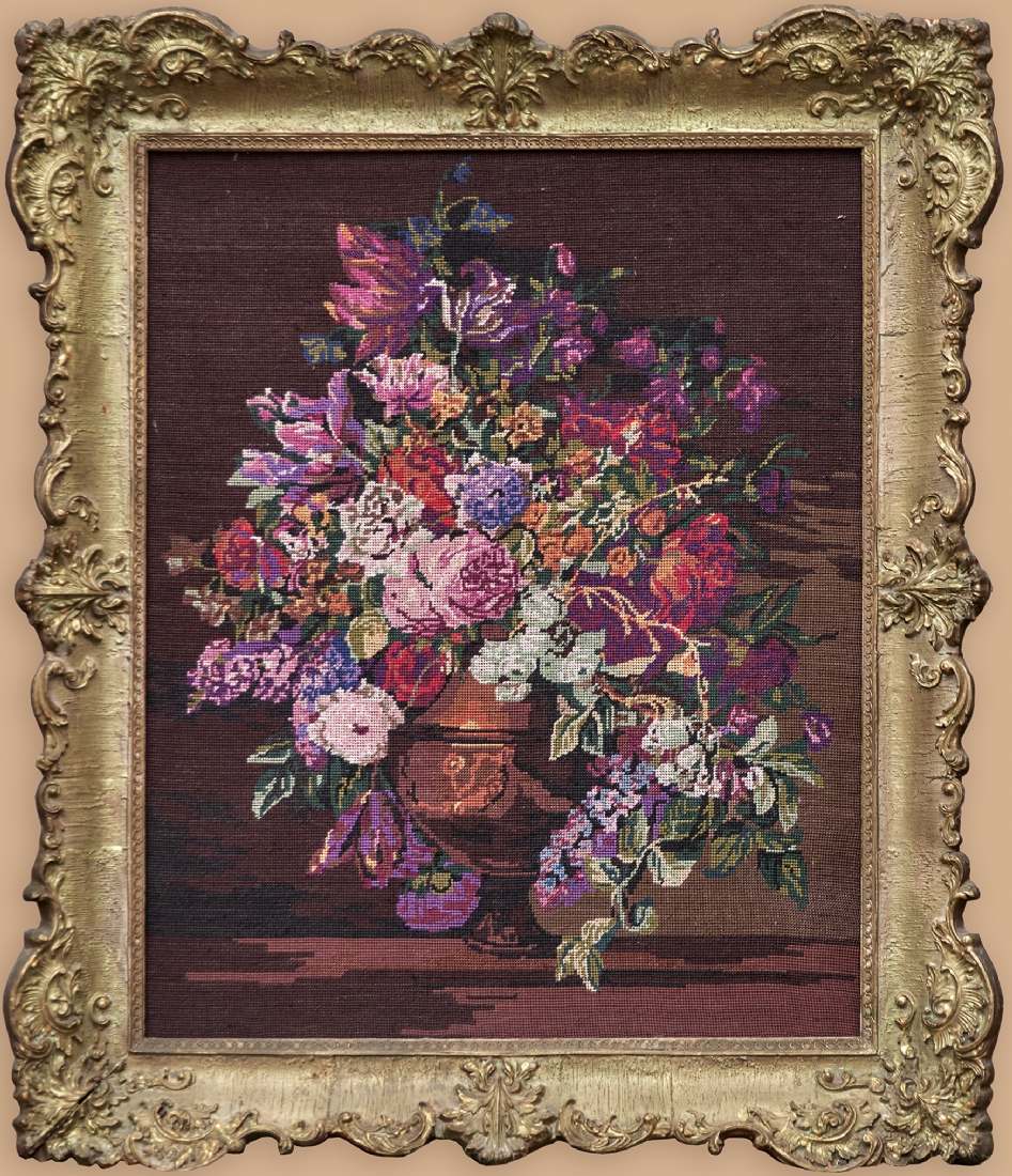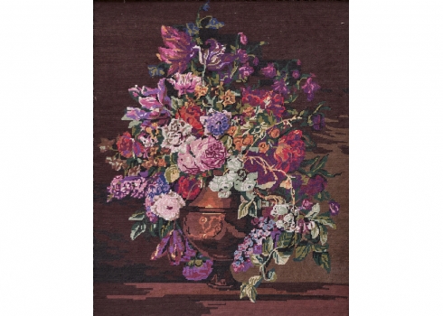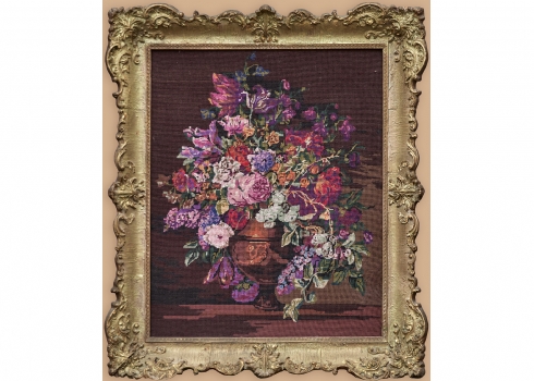 פרחים בכד, גובלן ממסוגר במסגרת מרשימה ונאה