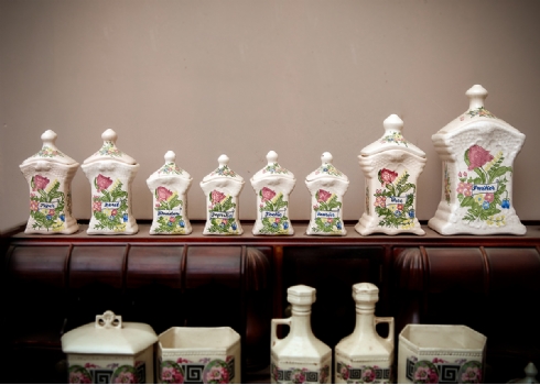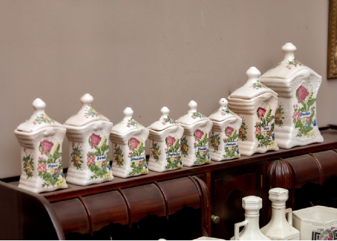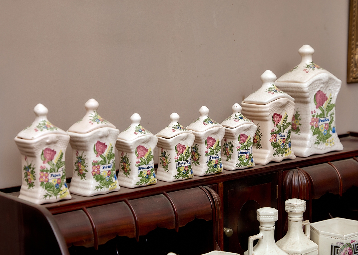 סט מיכלים לתבלינים למטבח עשוי חרסינה מעוטרת, חתומים