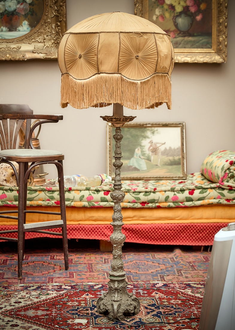 מנורת רצפה, רגל עשויה מתכת, אהיל בד