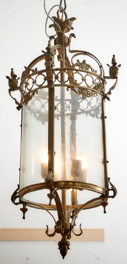 מנורת תקרה עשוייה פליז וזכוכית, 4 נורות
