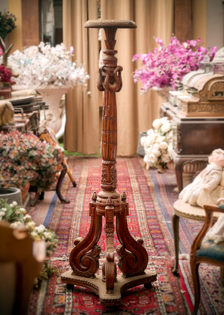 עמוד תצוגה בסגנון עתיק עשוי עץ מגולף בעבודת יד