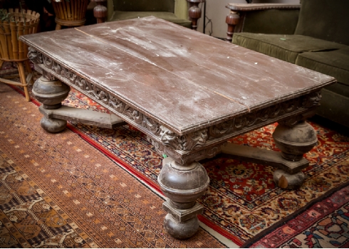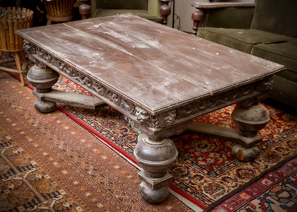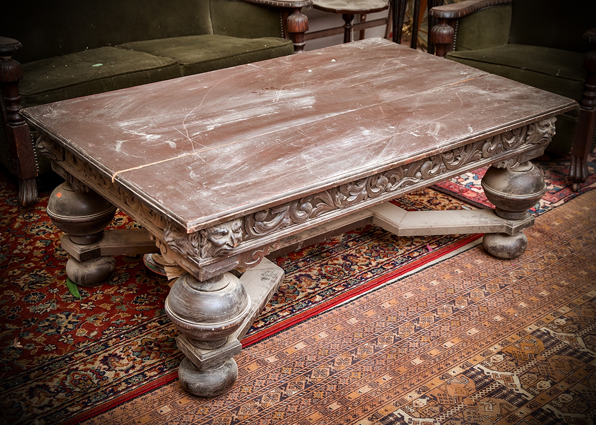 שולחן סלוני עתיק מהמאה ה19 עשוי עץ מגולף בעבודת יד בסגנון הנאו רנסאנס