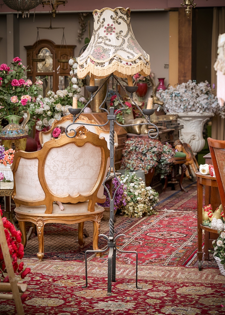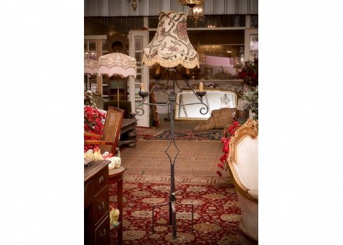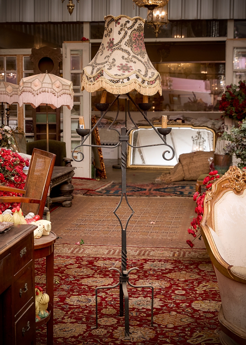 מנורת רצפה עשויה ברזל ואהיל בד, 5 בתי נורה ללא חיווט