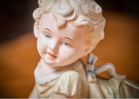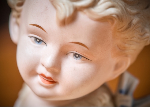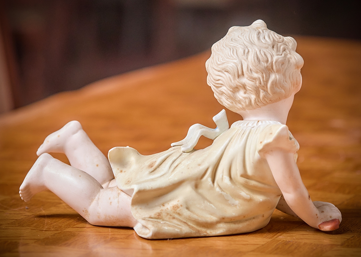 תינוק פסנתר (piano baby) עשוי ביסקוויט צבוע ביד, המאה ה19