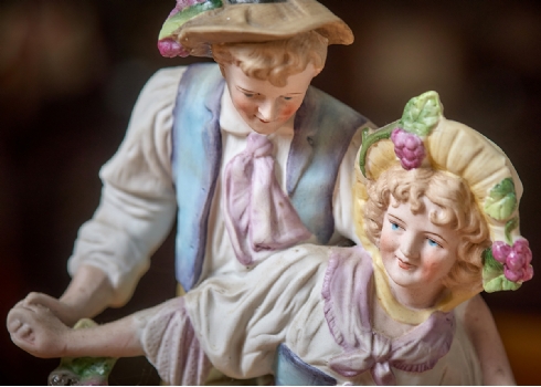 פסל ביסקוויט עתיק בדמות זוג בכרם ענבים, אלגוריה לסתיו, ממוספר