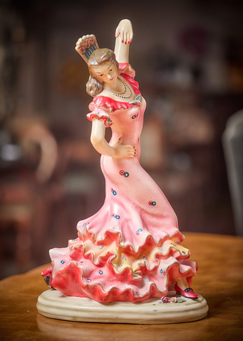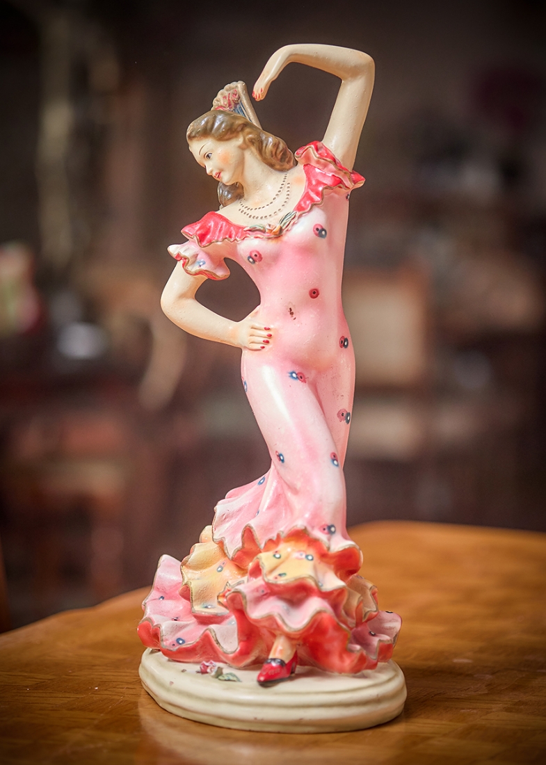 רקדנית פלמנקו - פסל וינטג איטלקי משנות ה50, עשוי חרס צבוע ביד