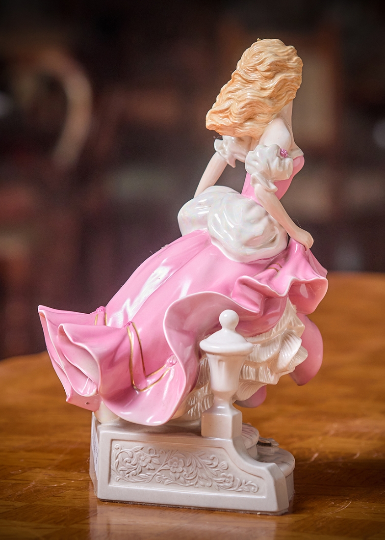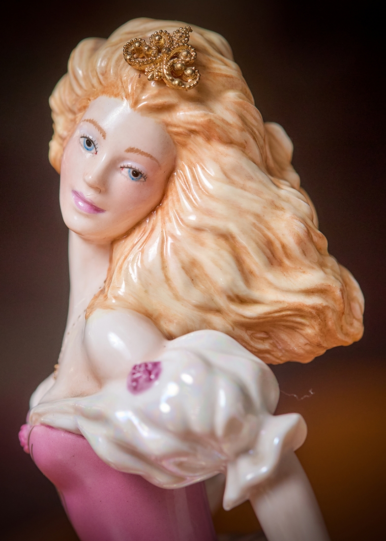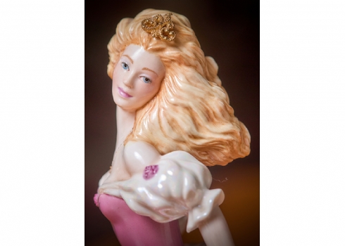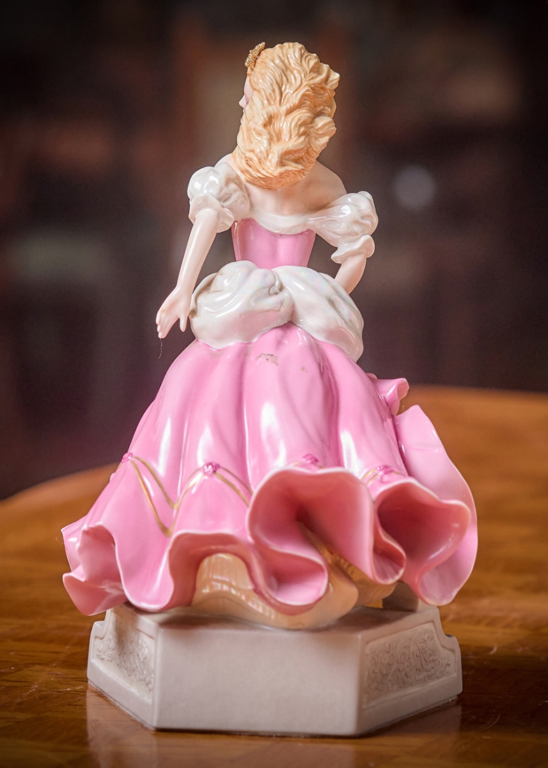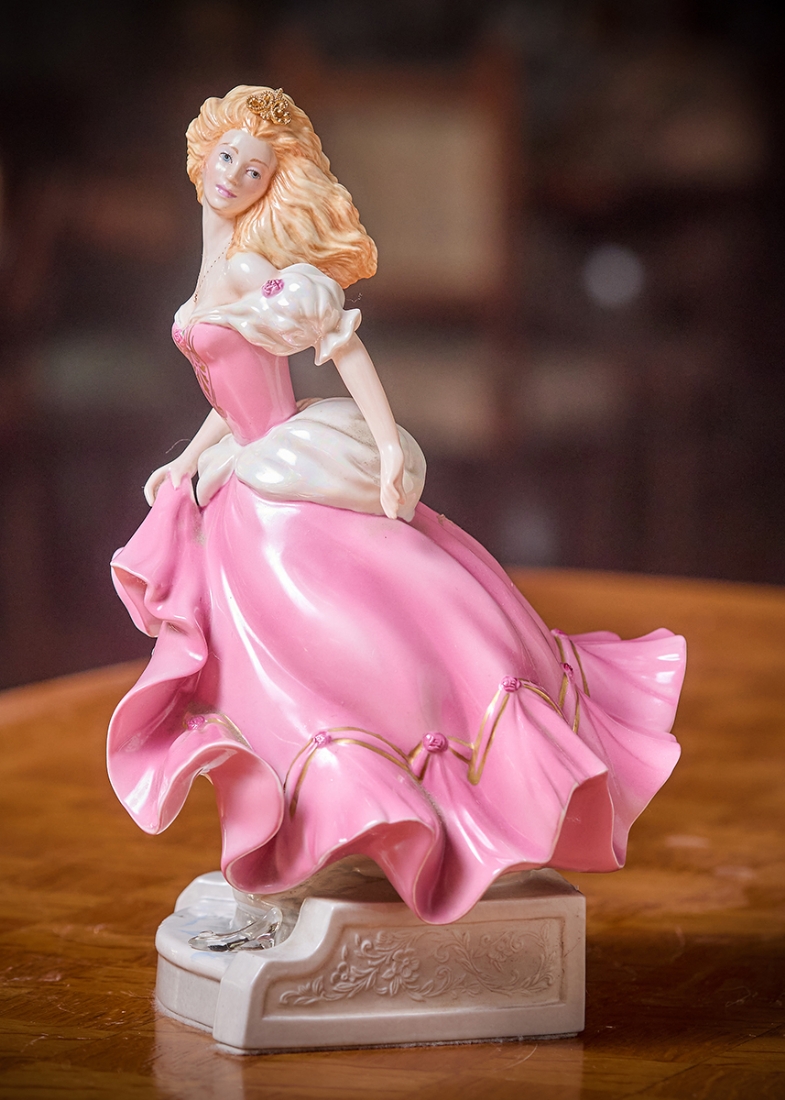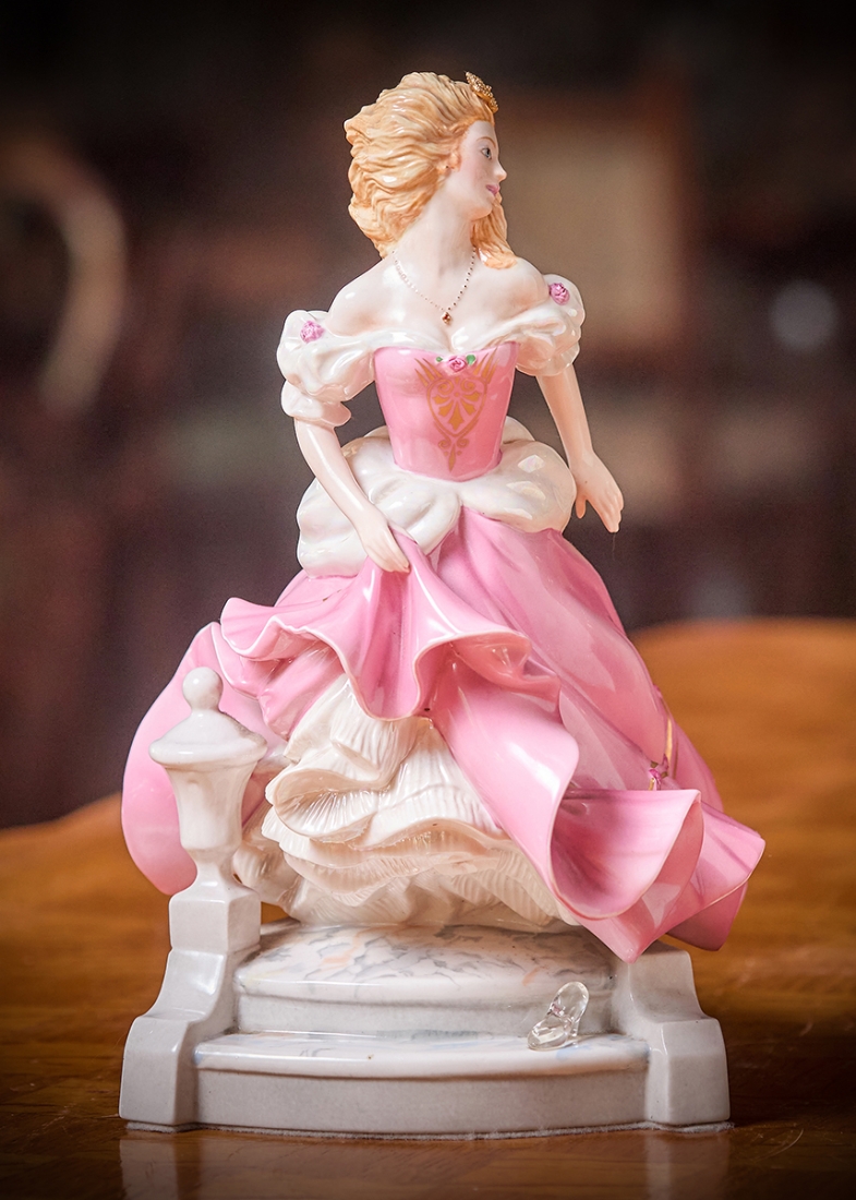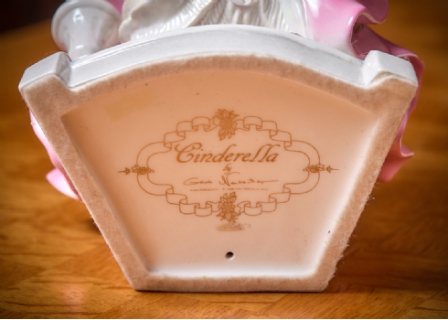פסל פורצלן בדמותה של סינדרלה מעוטר בצביעת יד וחתום