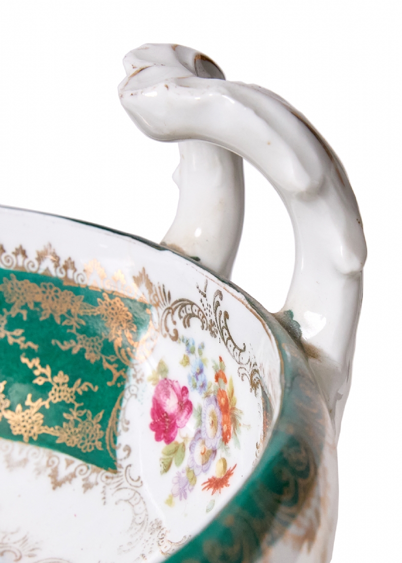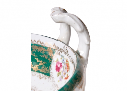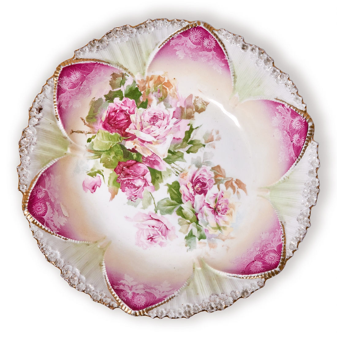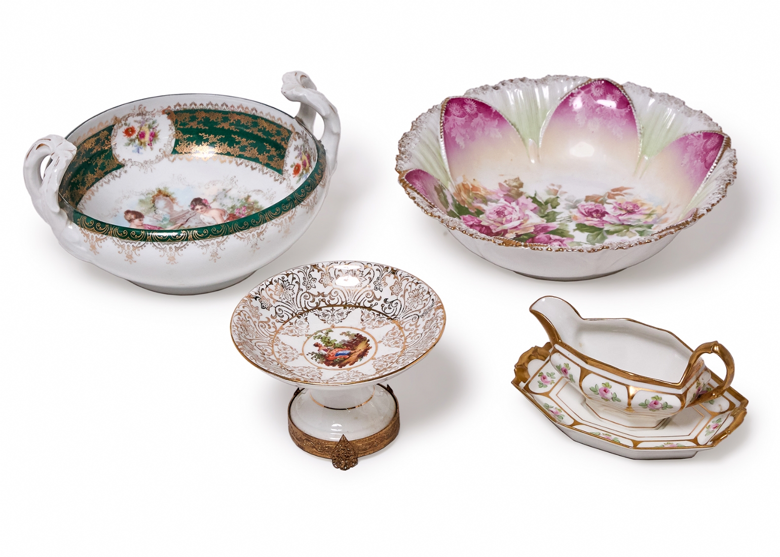 ארבעה כלי פורצלן שונים מעוטרים וחתומים