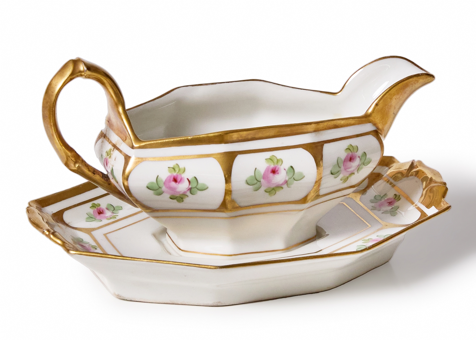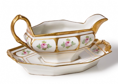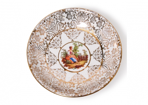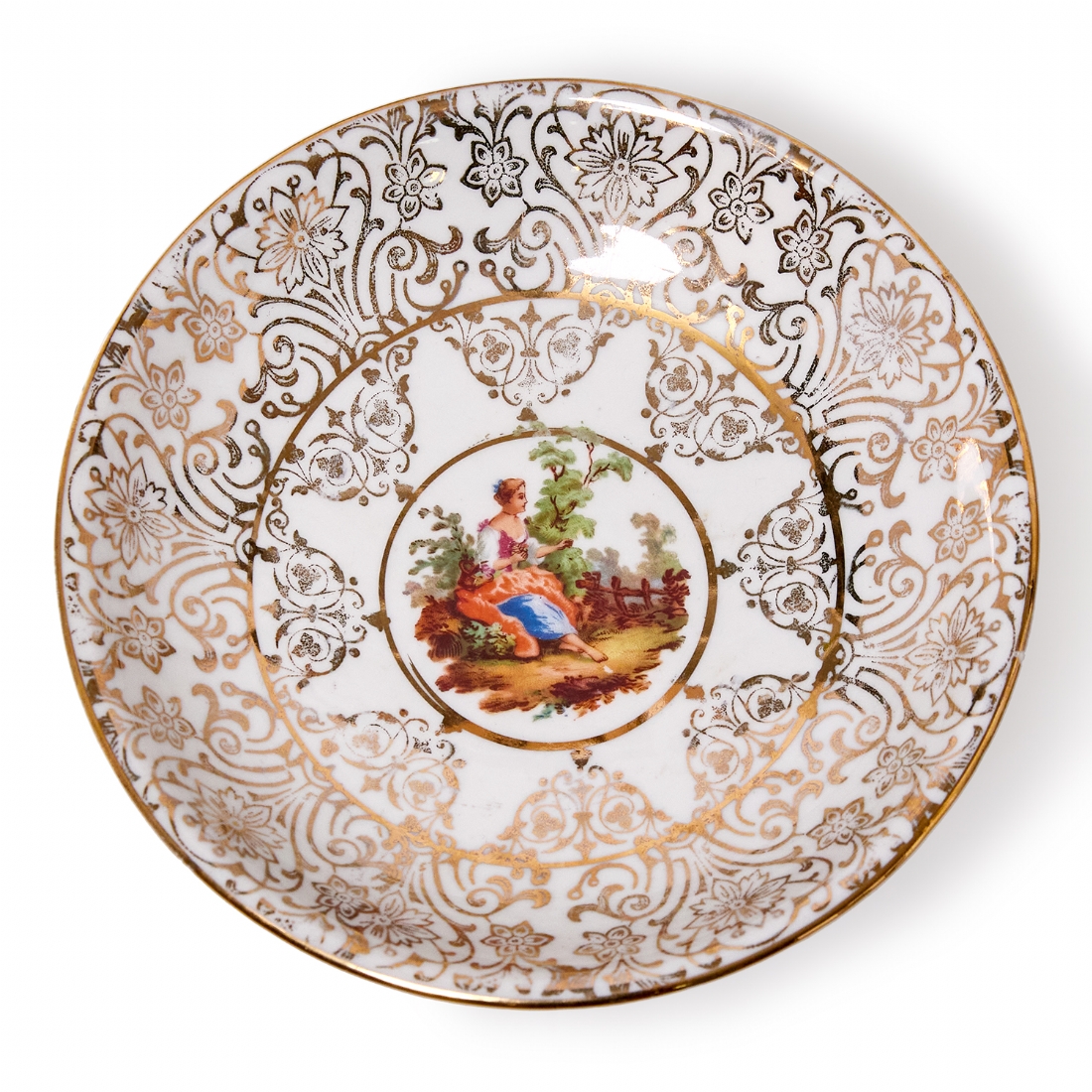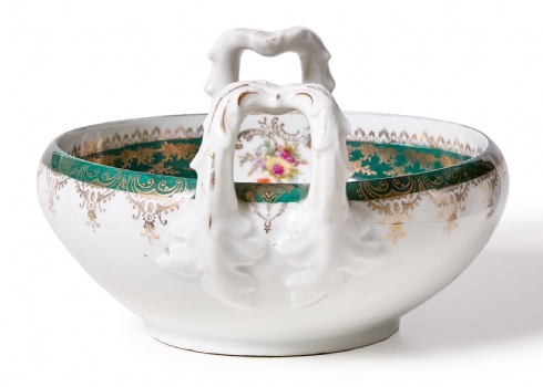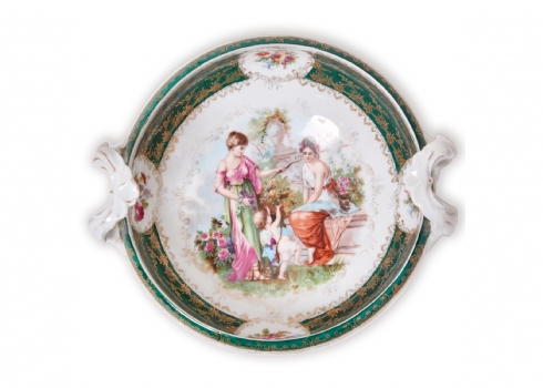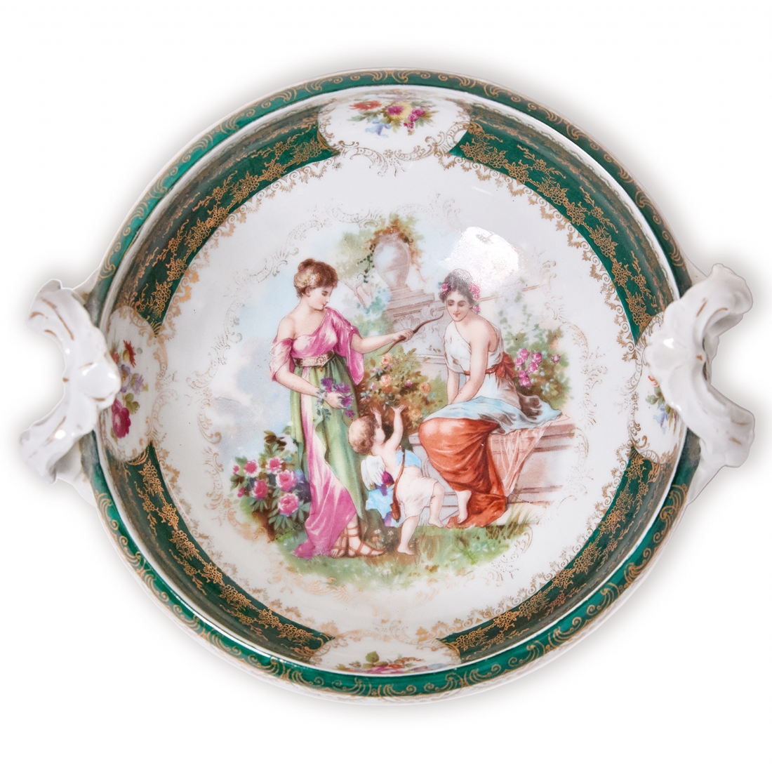 ארבעה כלי פורצלן שונים מעוטרים וחתומים