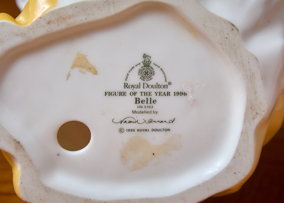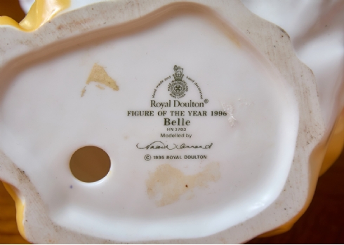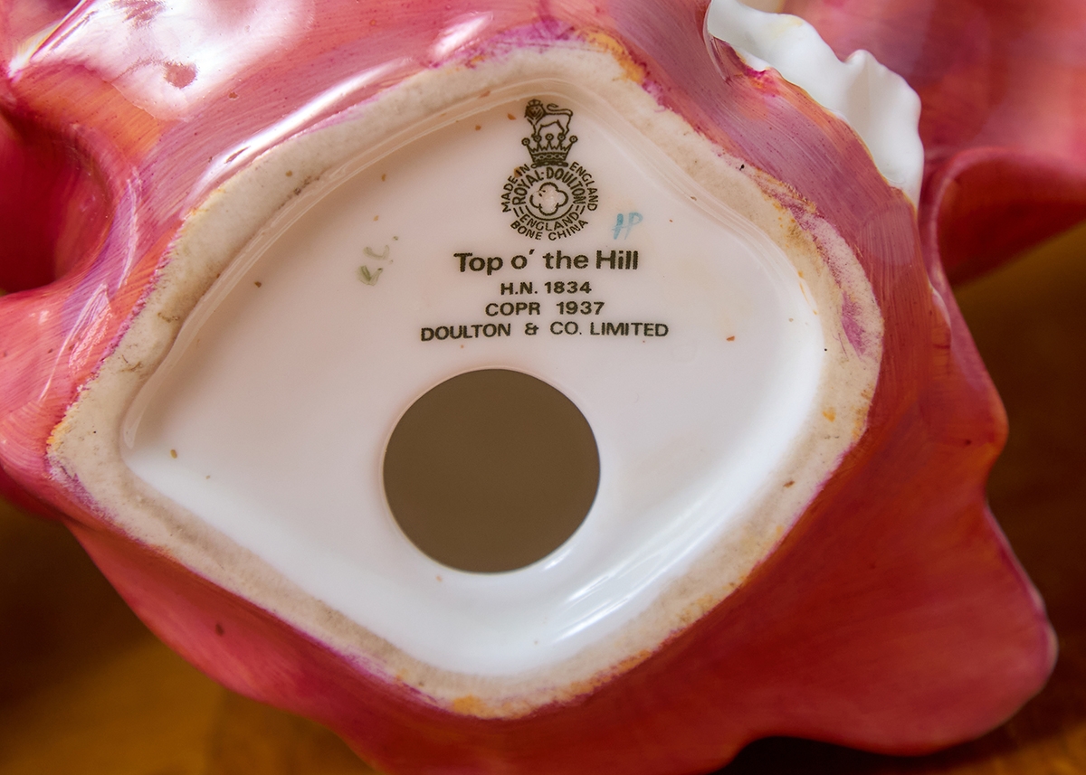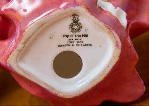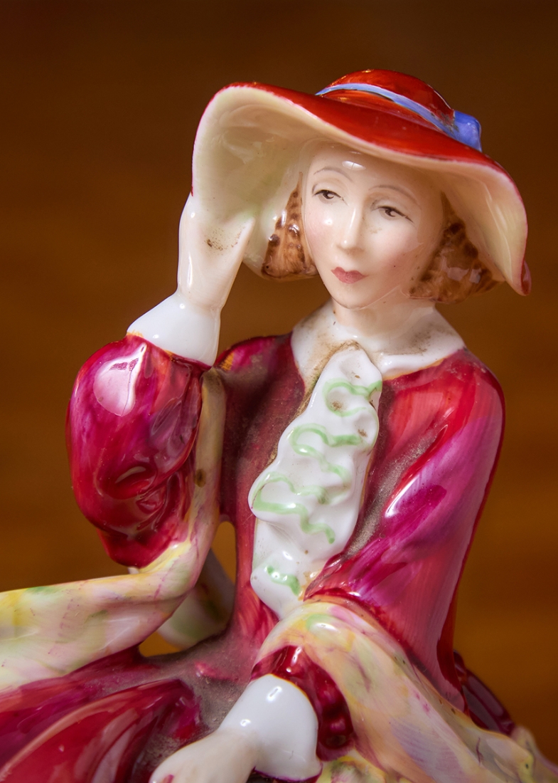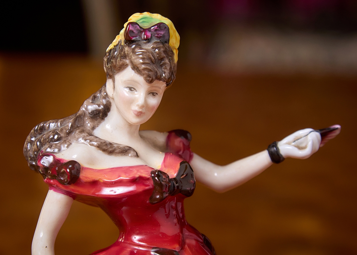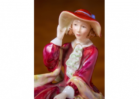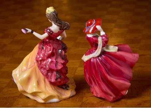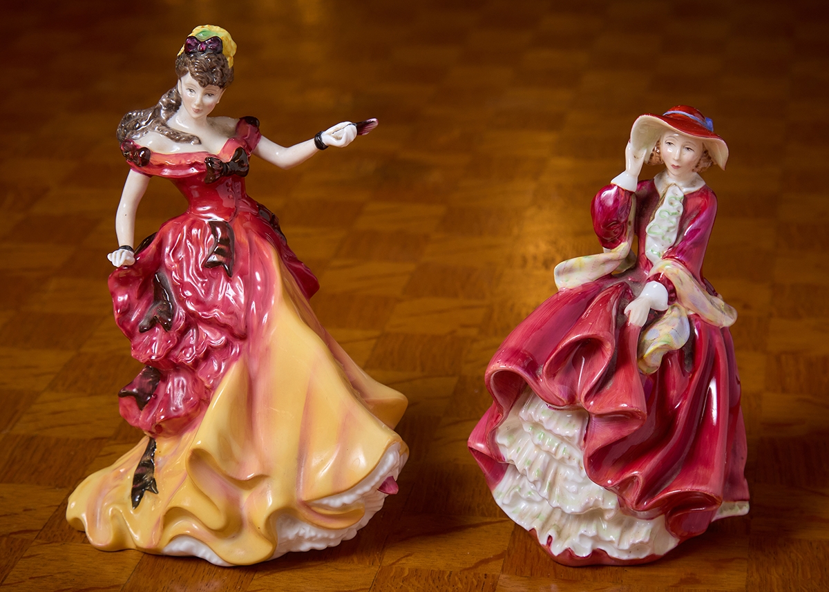 דמויות נשים בשמלות אדומות, מעוטרים בצביעת יד וחתומיםרוחב: 18-13 ס"מגובה: 20-24 ס"מ
