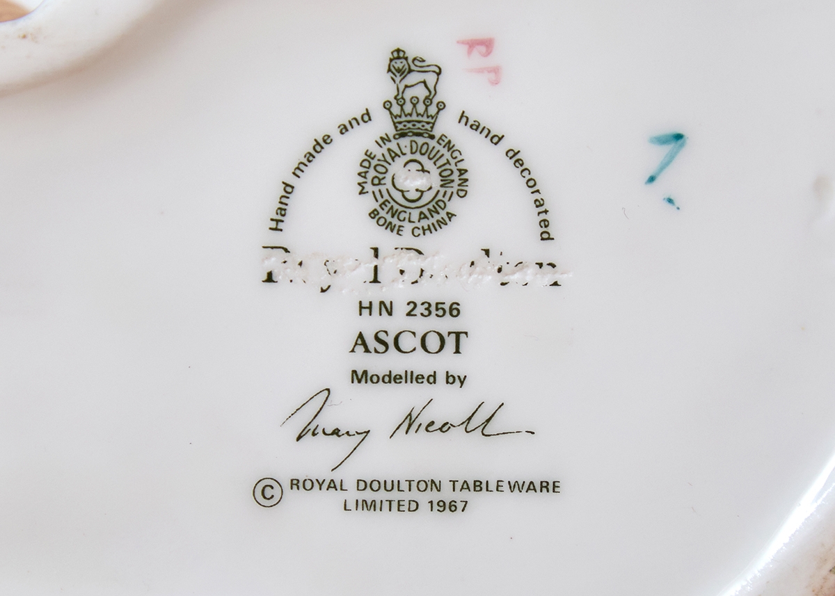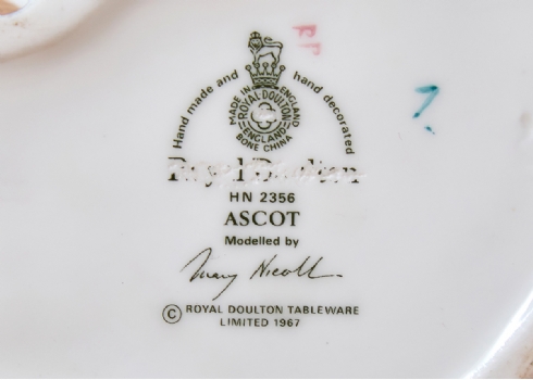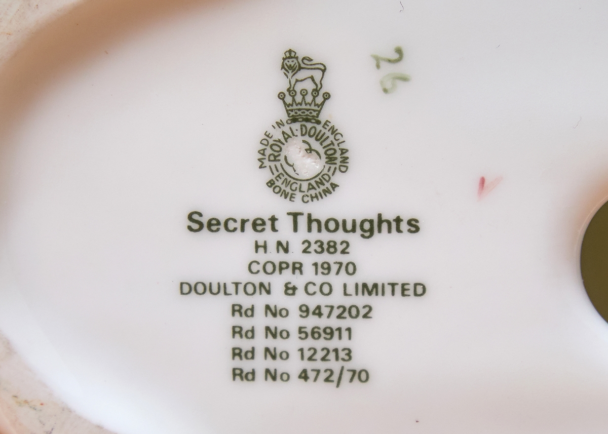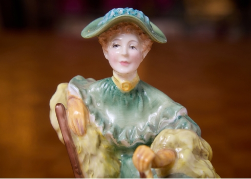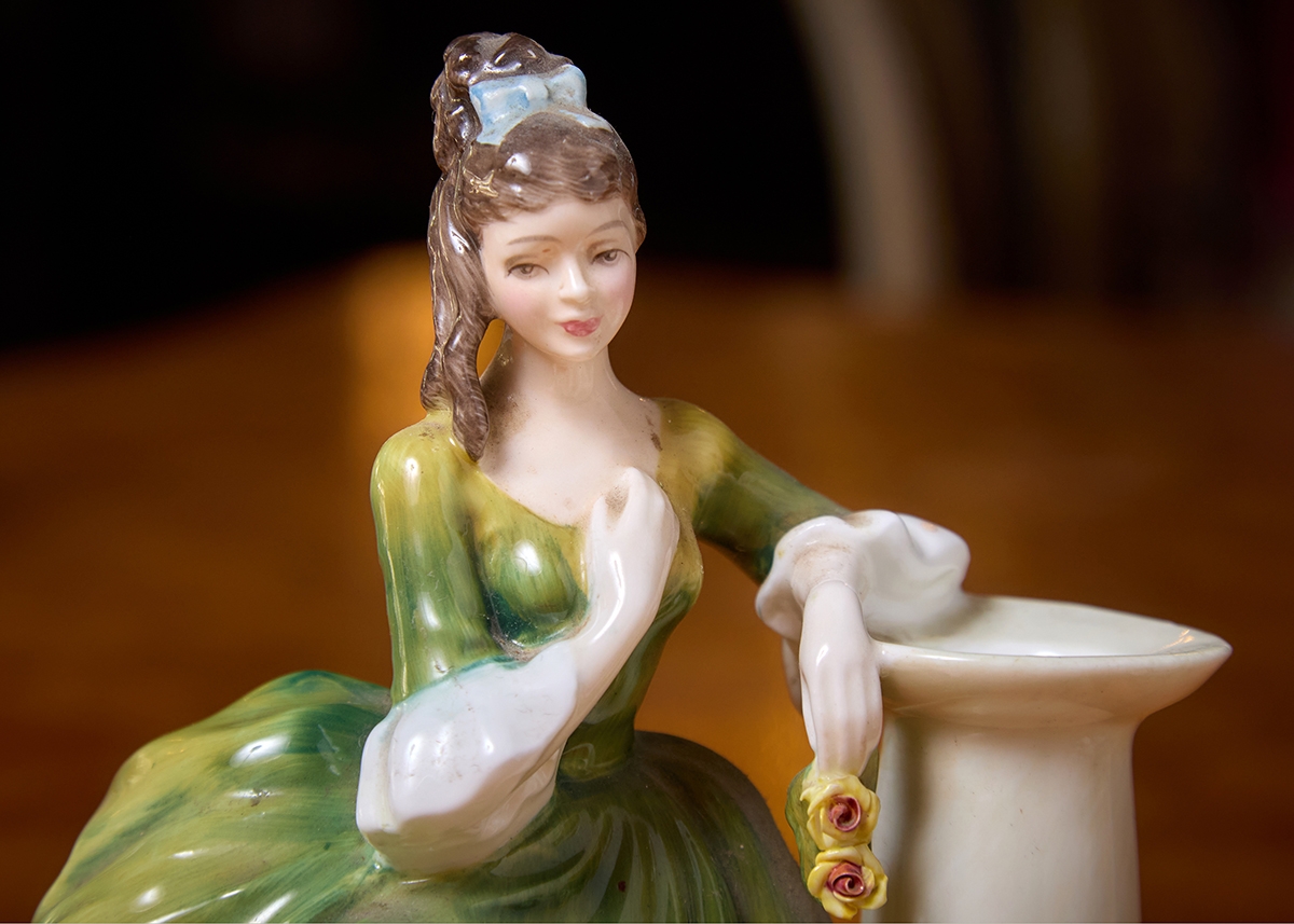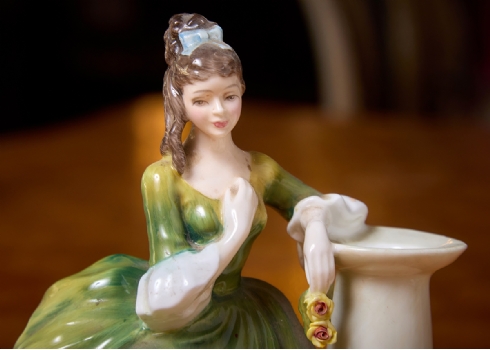דמויות נשים בשמלות ירוקות, מעוטרים בצביעת יד וחתומיםרוחב: 15-19 ס"מגובה: 16-18 ס"מ