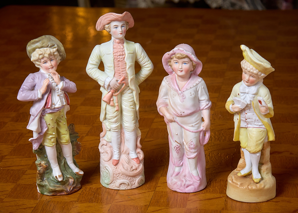 4 פסלוני ביסקוויט בדמות ילדים ונערים מעוטרים בצביעת יד