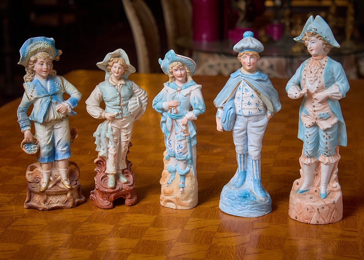 5 פסלוני ביסקוויט בדמות ילדים ונערים מעוטרים בצביעת יד