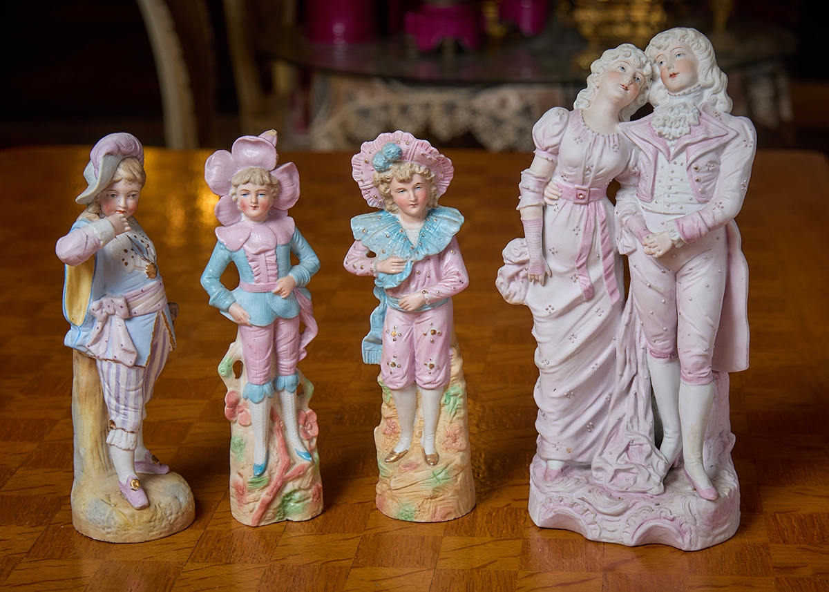4 פסלוני ביסקוויט בדמות ילדים ונערים מעוטרים בצביעת יד