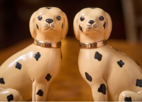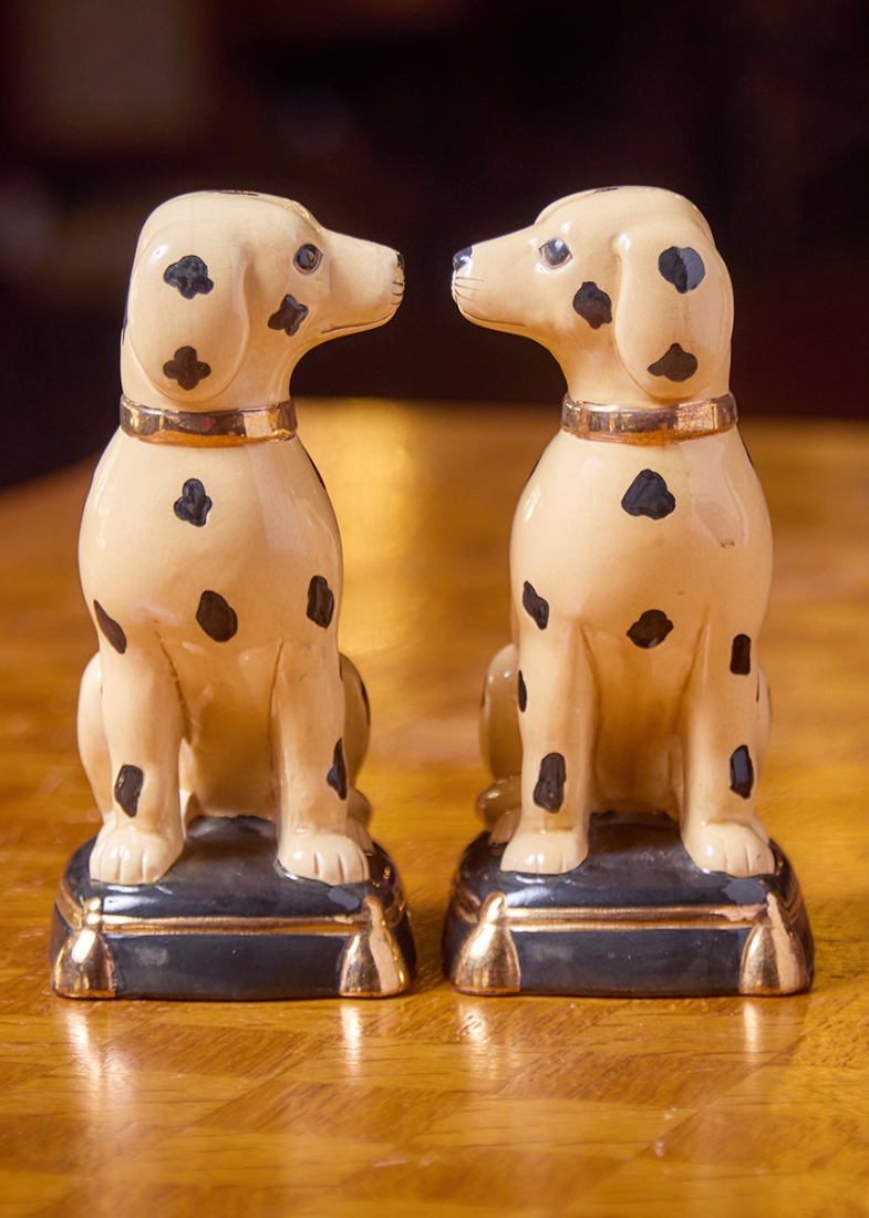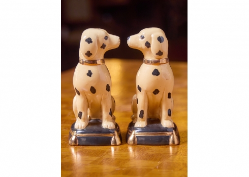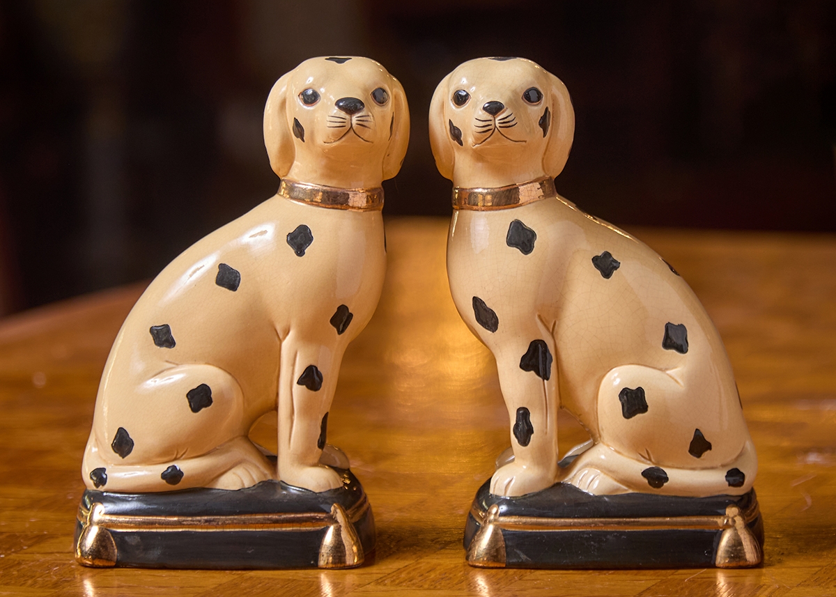 שני פסלוני פורצלן בדמות כלבים