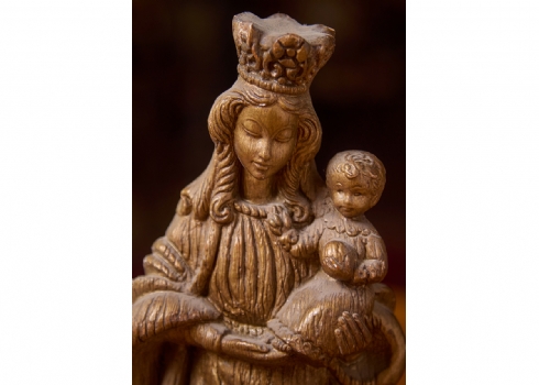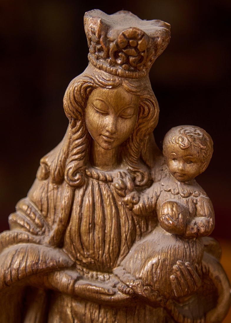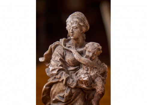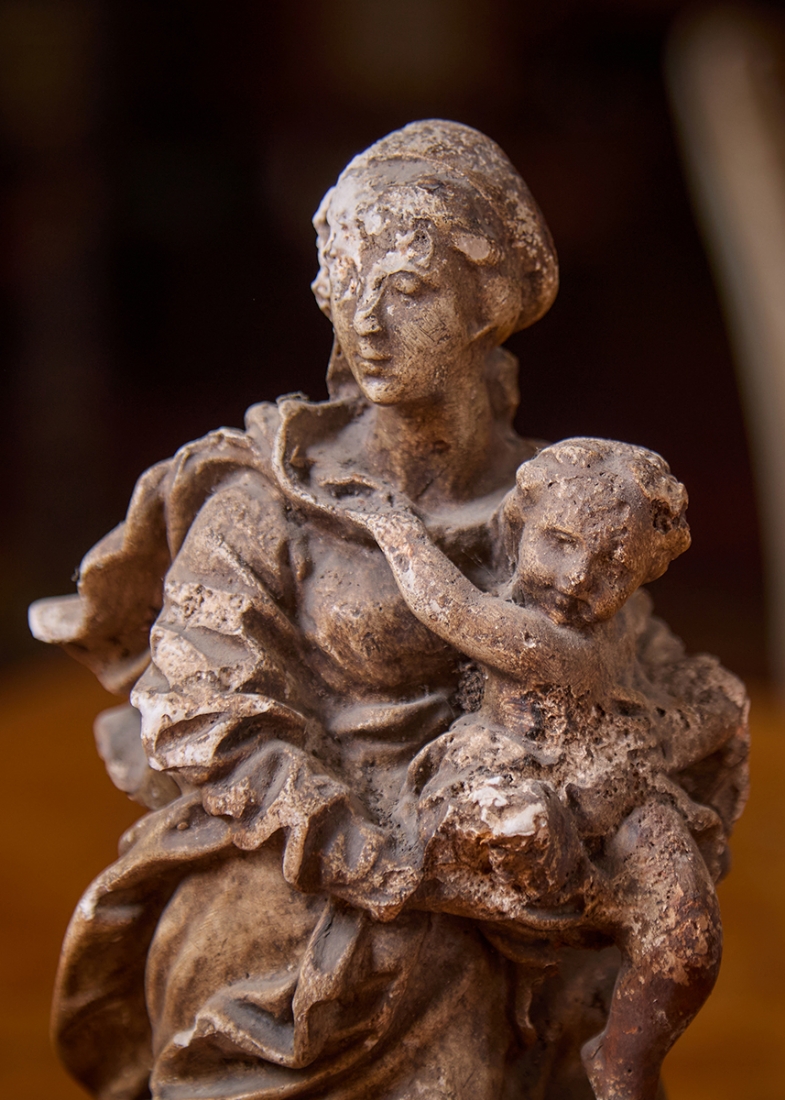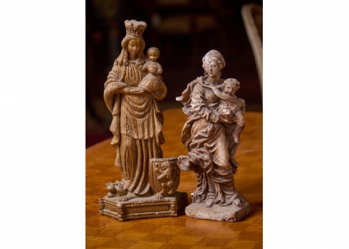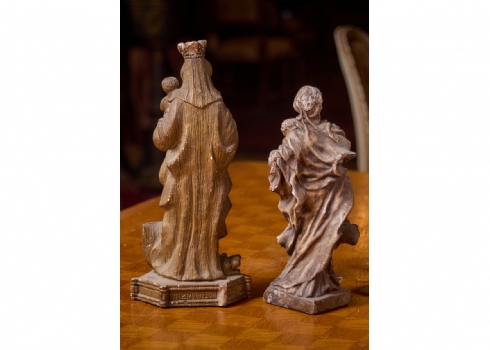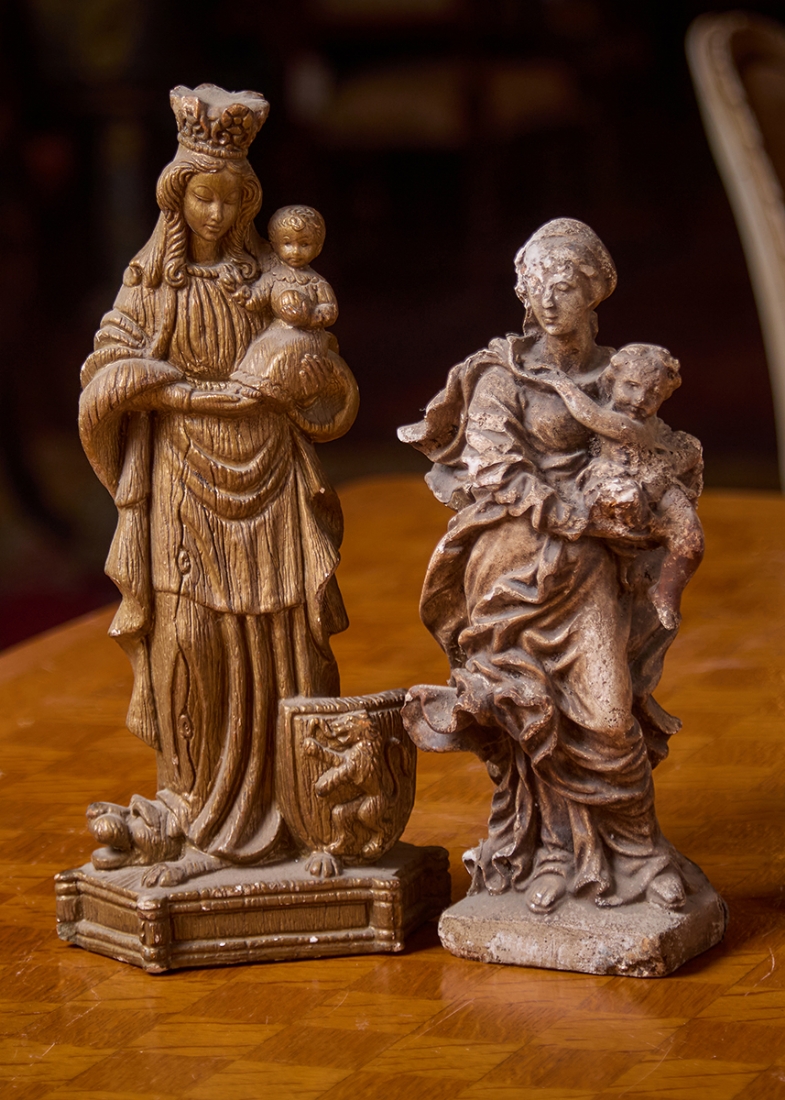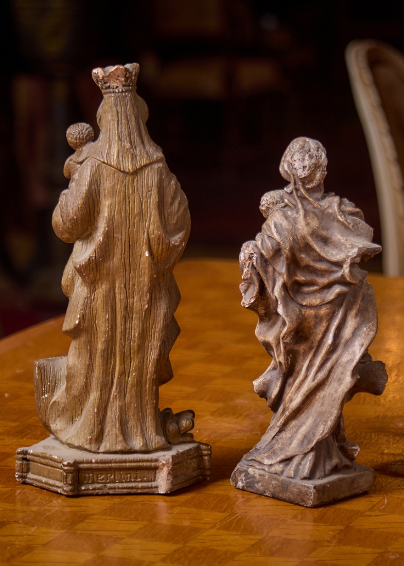 זוג פסלי גבס בנושאים נוצריים, צבעים בגוון חום ירקרק